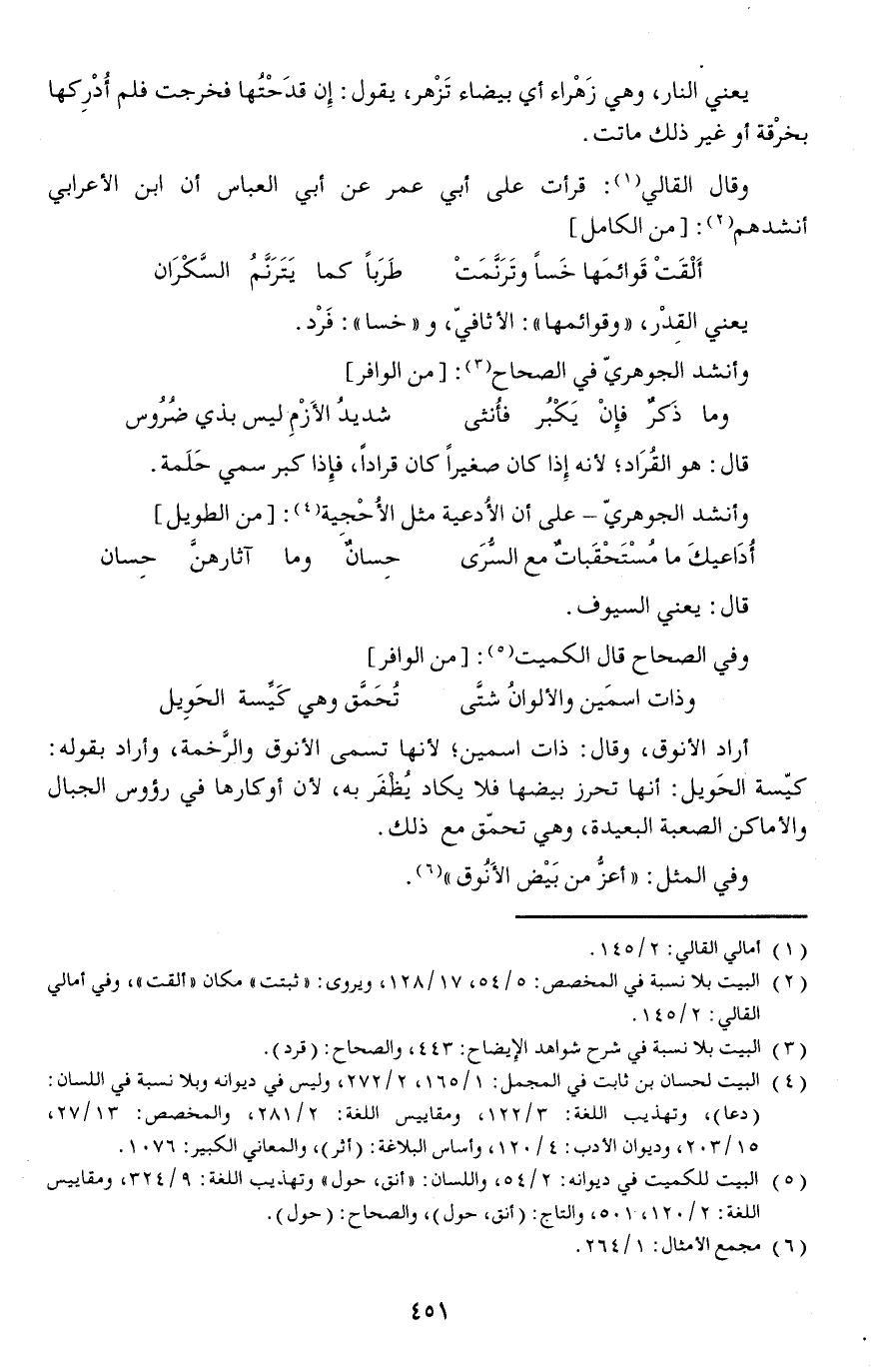 وقال القالي: قرأت على ابي عمر عن أبي العباس أن ابن الأعرابي أنشدهم: // من الكامل //