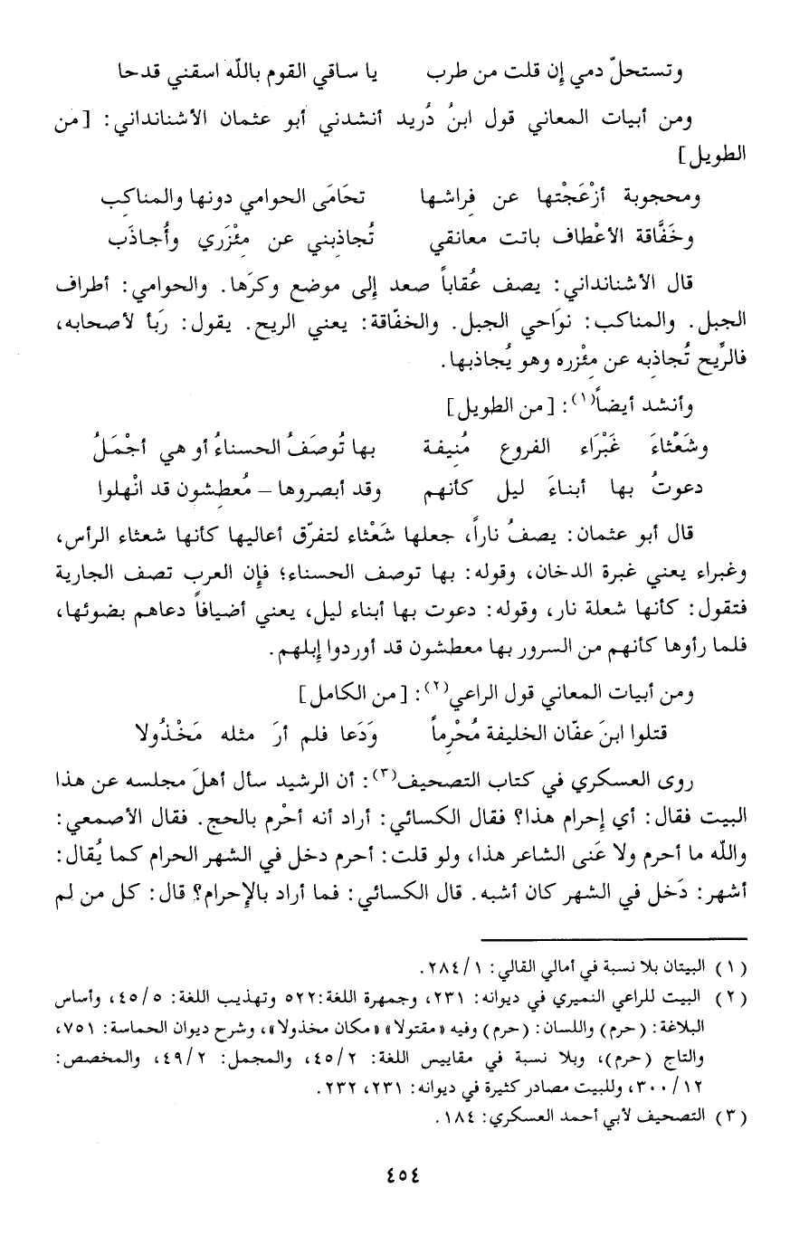 ومن أبيات المعاني قول ابنُ دُريد أنشدني أبو عثمان الأشنانداني: // من الطويل //