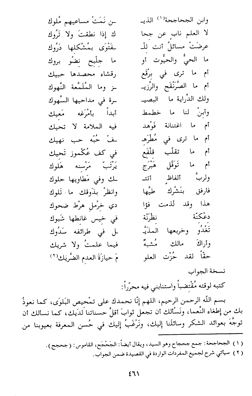 (لا العلم ناب عن جحاك ... إذا نطقت ولا تروك)