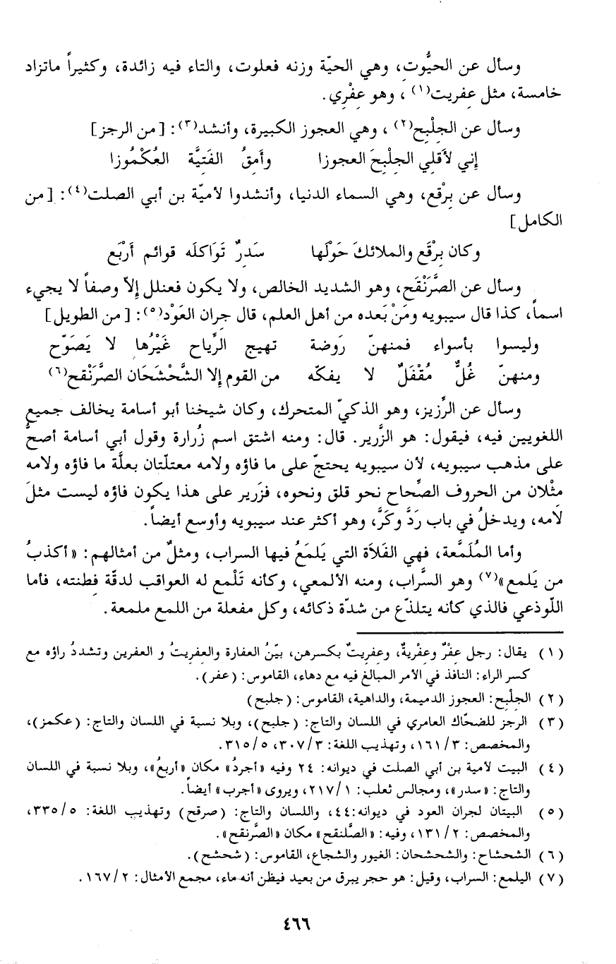 وسأل عن الحيُّوتِ وهي الحية وزنه فعلوت والتاء فيه زائدة وكثيرا ما تزاد خامسة مثل عِفريت وهو عِفْرِي.