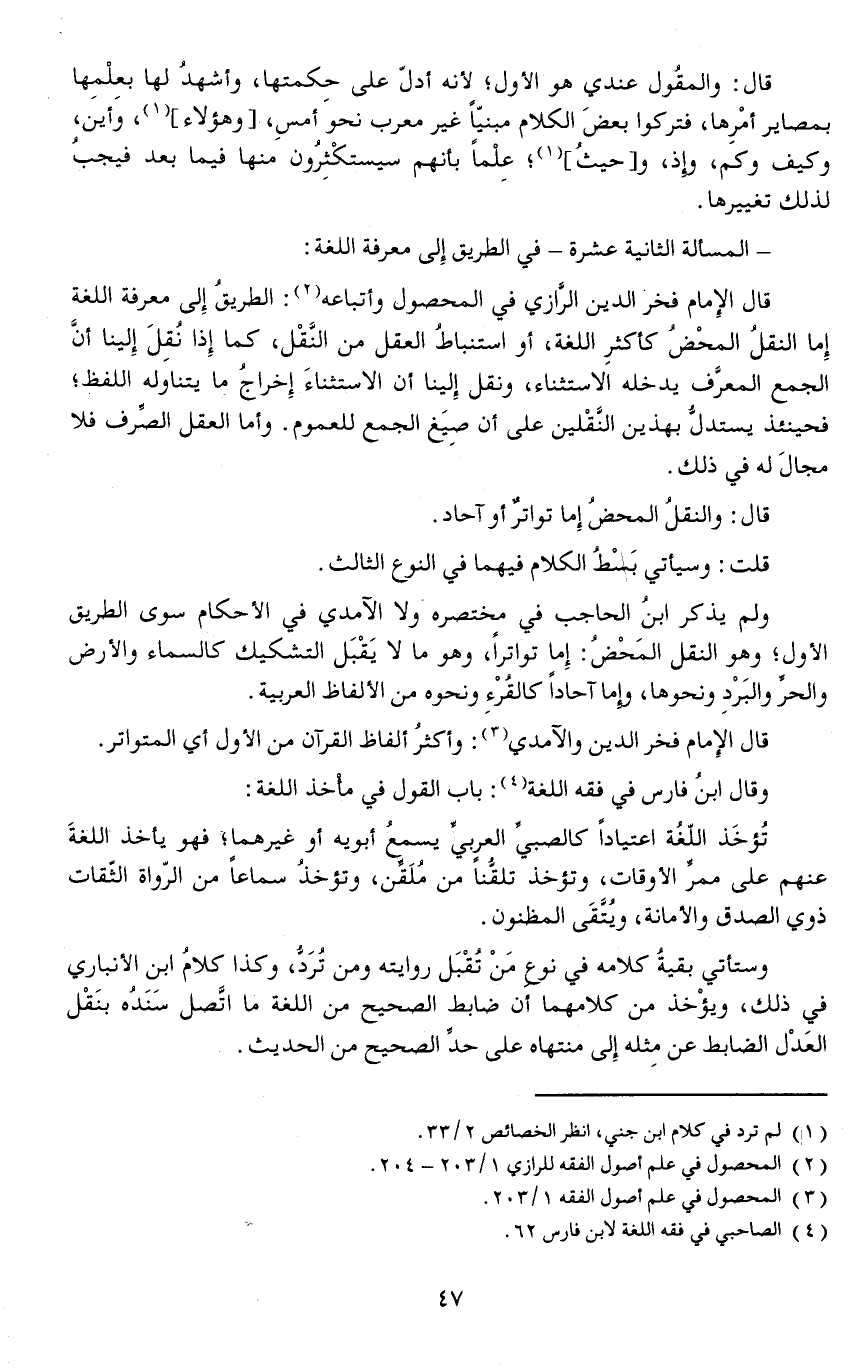 - المسألة الثانية عشرة - في الطريق إلى معرفة اللغة: