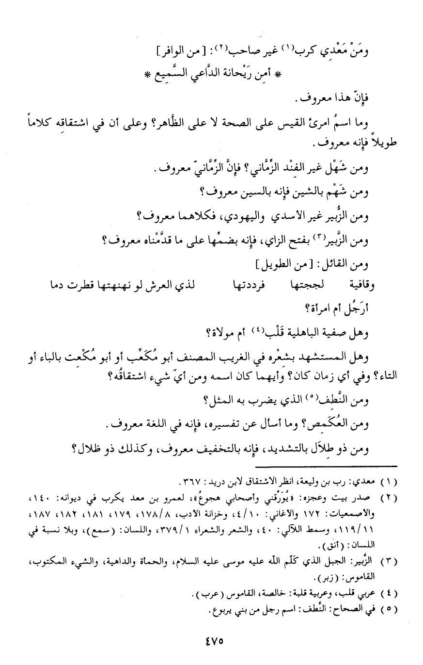 وما اسمُ امرئ القيس على الصحة لا على الظاهروعلى أن في اشتقاقِه كلاما طويلا فإنه معروف.