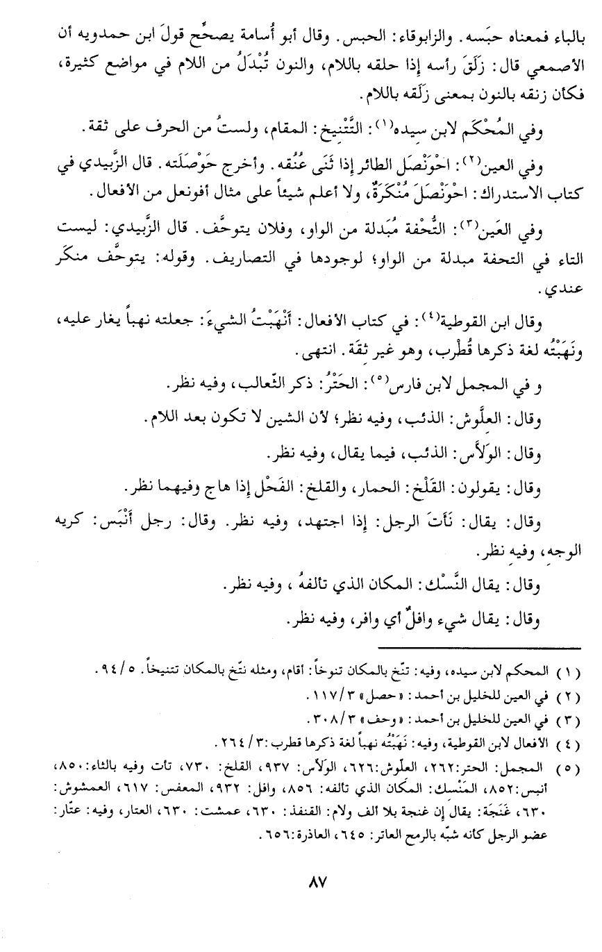 قال الزَّبيدي: ليست التاء في التحفة مبدلة من الواو لوجودها في التصاريف.