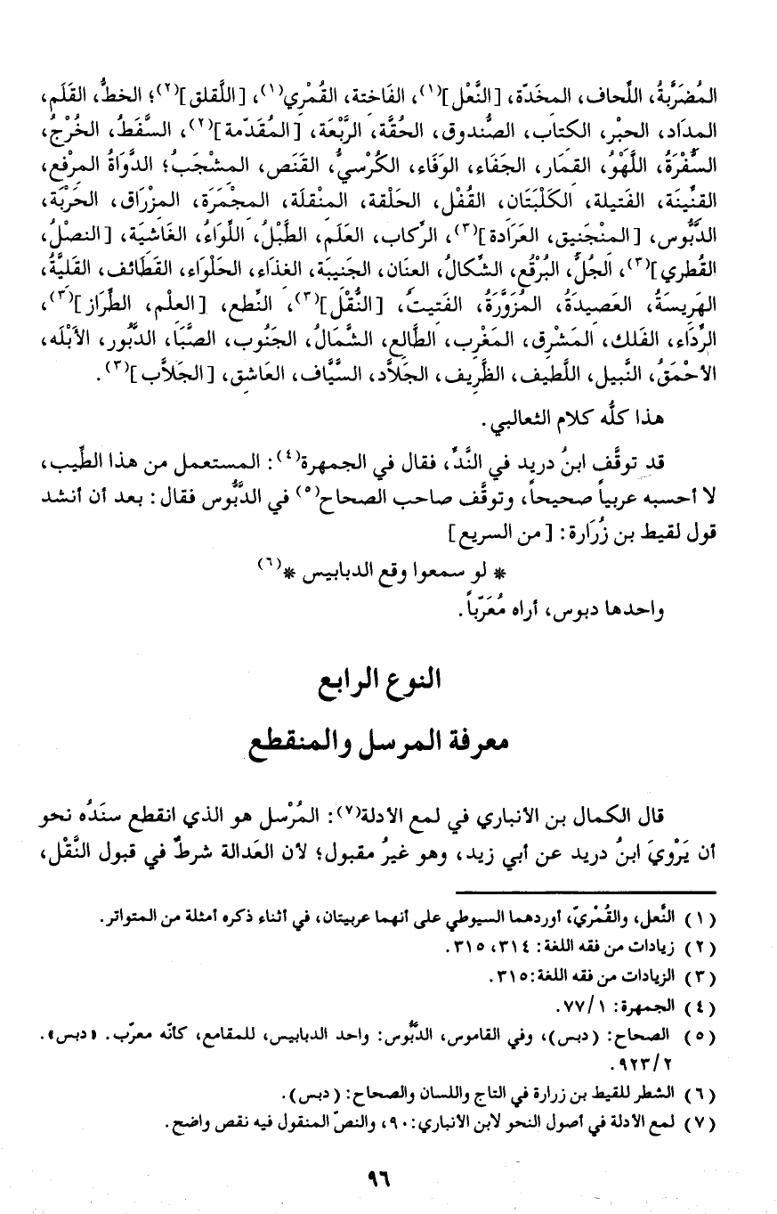 قد توقَّف ابنُ دريد في النَّدِّ فقال في الجمهرة: المستعمل من هذا الطِّيب لا أحسبه عربيا صحيحا وتوقَّف صاحب الصحاح في الدَّبُّوس فقال: بعد أن أنشد قول لقيط بن زرارة: // من السريع //