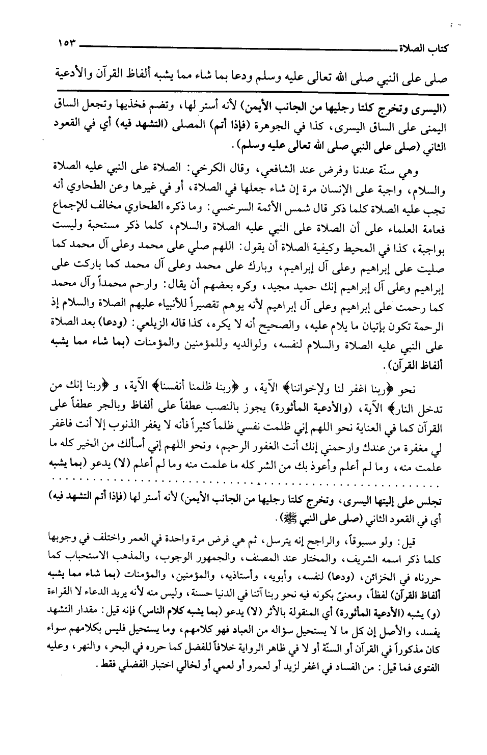 صلى على النَّبِي صلى الله تَعَالَى عَلَيْهِ وَسلم ودعا بِمَا شَاءَ مِمَّا يشبه أَلْفَاظ الْقُرْآن والأدعية