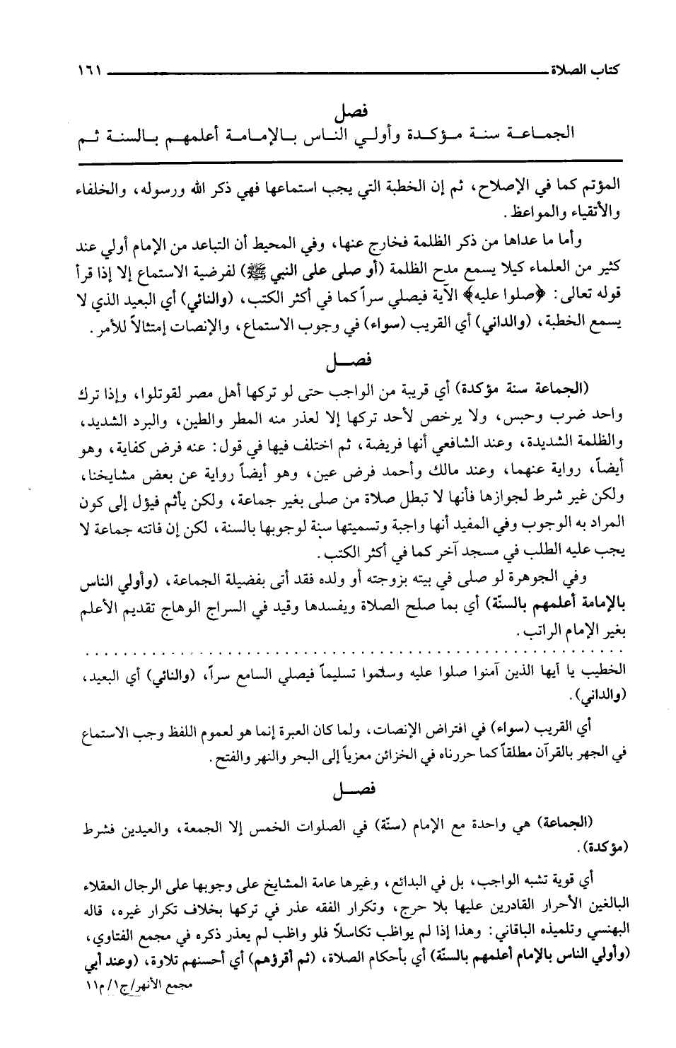 الْجَمَاعَة سنة مُؤَكدَة وأولي النَّاس بِالْإِمَامَةِ أعلمهم بِالسنةِ ثمَّ