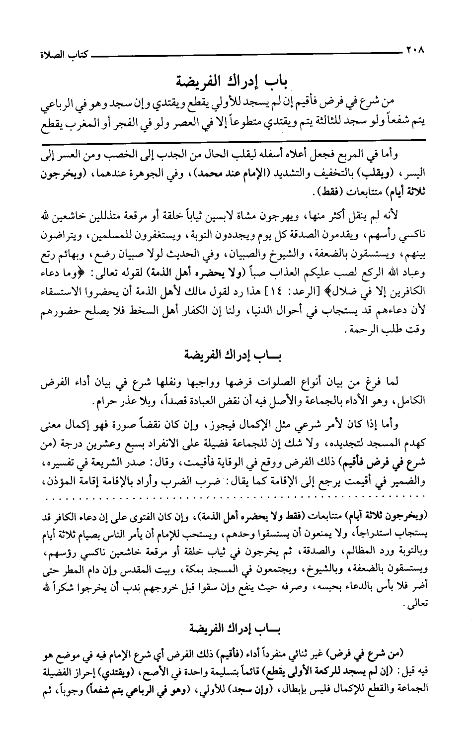 من شرع فِي فرض فأقيم إِن لم يسْجد للأولي بِقطع ويقتدي وَإِن سجد وَهُوَ فِي الرباعي يتم شفعاً وَلَو سجد للثالثة يتم ويقتدي مُتَطَوعا إِلَّا فِي الْعَصْر وَلَو فِي الْفجْر أَو الْمغرب يقطع