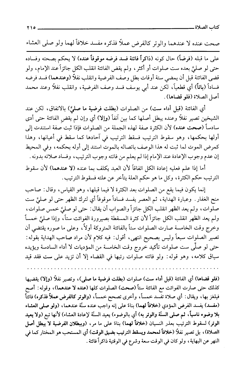 صحت عِنْده لَا عِنْدهمَا وَالْوتر كالفرض عملا فَذكره مُفسد خلافًا لَهما وَلَو صلى الْعشَاء