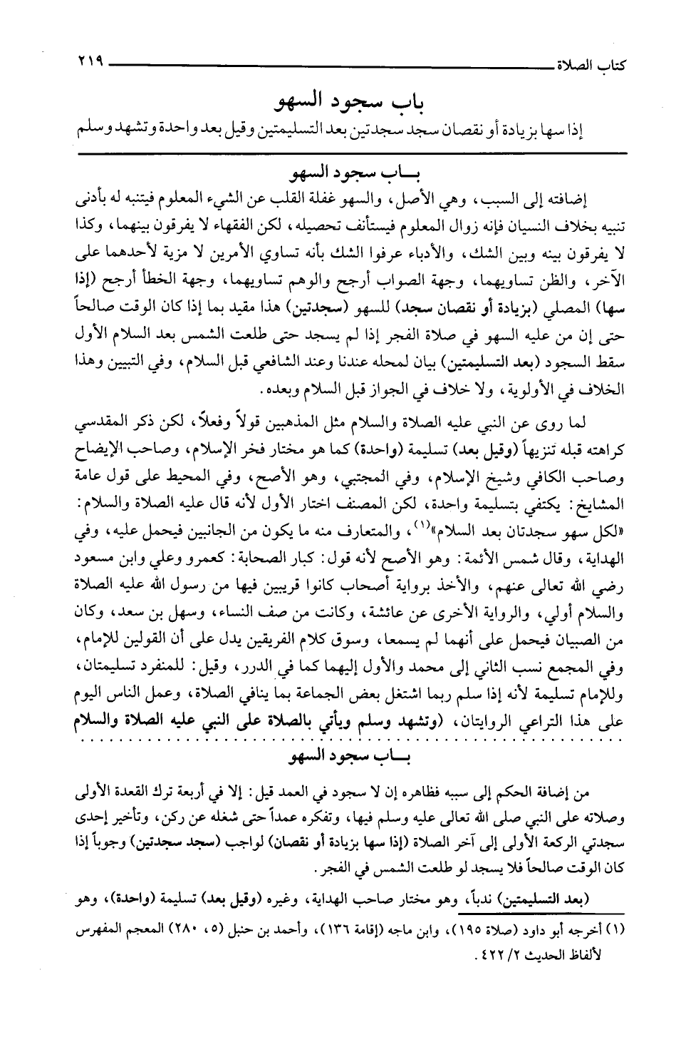 إِذا سَهَا بِزِيَادَة أَو نُقْصَان سجد سَجْدَتَيْنِ بعد التسليمتين وَقيل بعد وَاحِدَة وَتشهد وَسلم