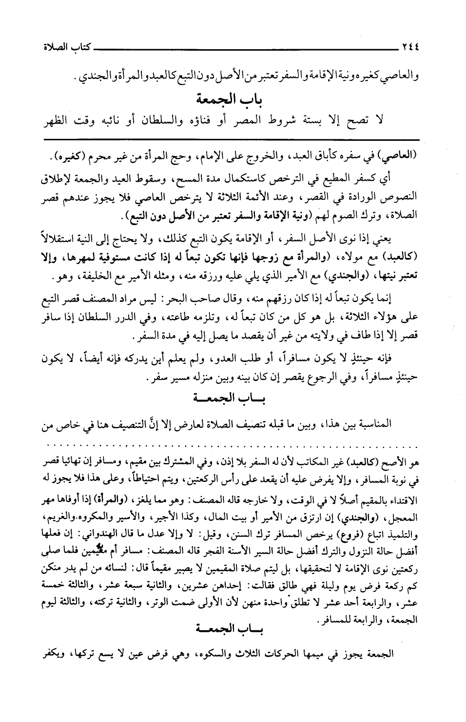 والعاصي كَغَيْرِهِ وَنِيَّة الْإِقَامَة وَالسّفر تعْتَبر من الأَصْل دون التبع كَالْعَبْدِ وَالْمَرْأَة والجندي.