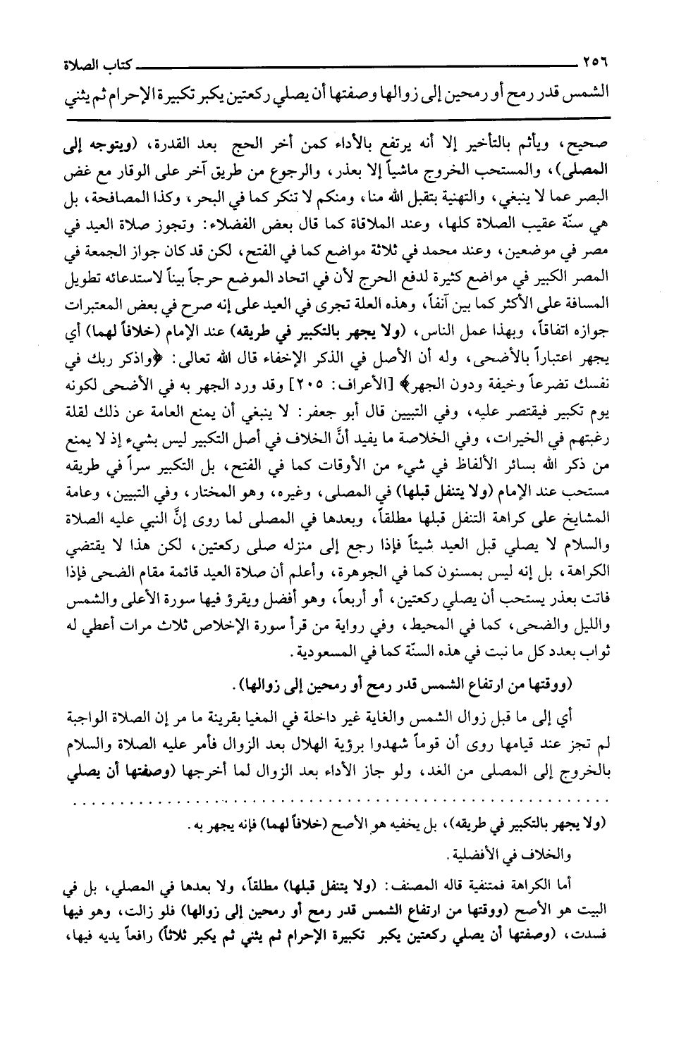 الشَّمْس قدر رمح أَو رُمْحَيْنِ إِلَى زَوَالهَا وصفتها أَن يُصَلِّي رَكْعَتَيْنِ يكبر تَكْبِيرَة الْإِحْرَام ثمَّ يثني
