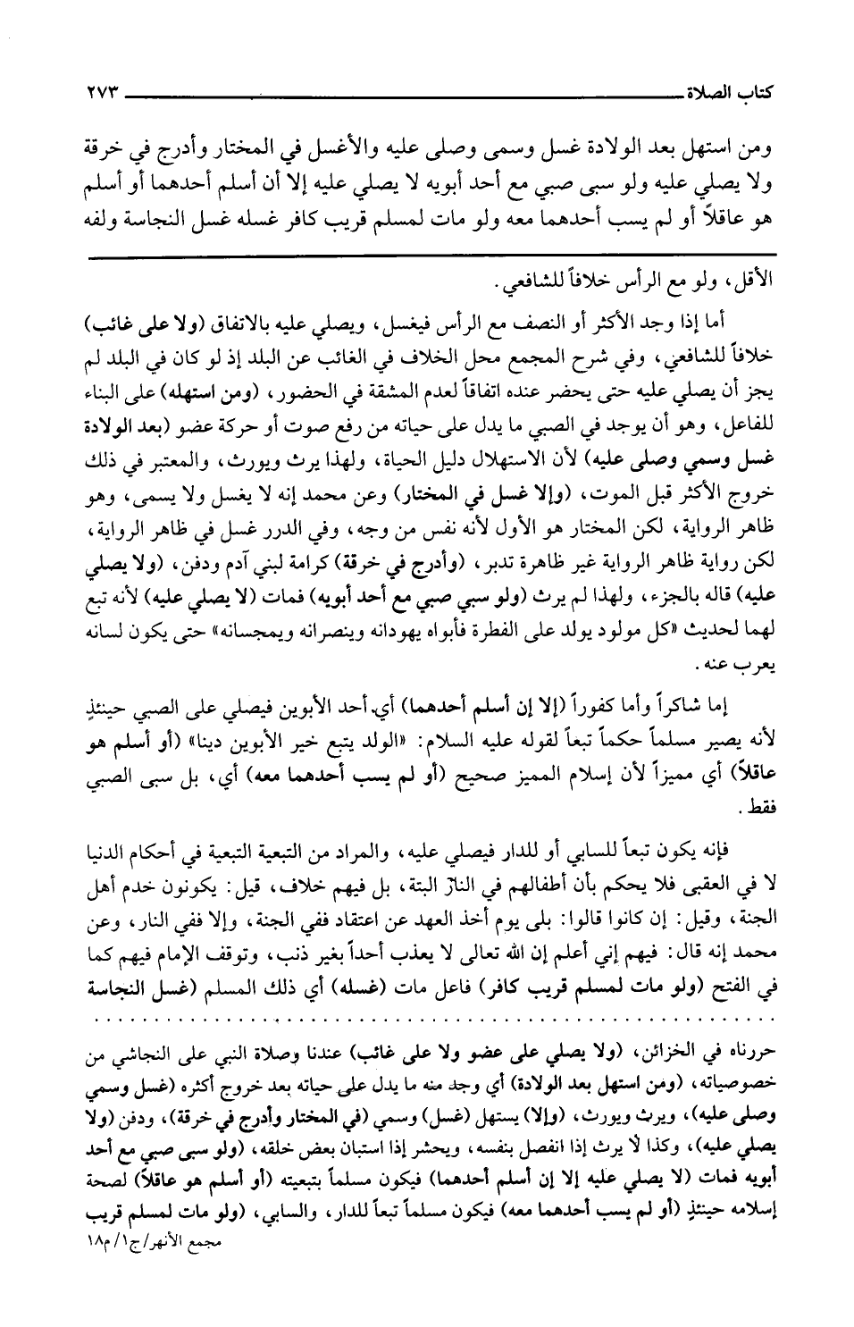 وَمن اسْتهلّ بعد الْولادَة غسل وسمى وَصلى عَلَيْهِ والأغسل فِي الْمُخْتَار وأدرج فِي خرقَة وَلَا يُصَلِّي عَلَيْهِ وَلَو سبى صبي مَعَ أحد أَبَوَيْهِ لَا يُصَلِّي عَلَيْهِ إِلَّا أَن أسلم أَحدهمَا أَو أسلم هُوَ عَاقِلا أَو لم يسب أَحدهمَا مَعَه وَلَو مَاتَ لمُسلم قريب كَافِر غسله غسل النَّجَاسَة ولفه