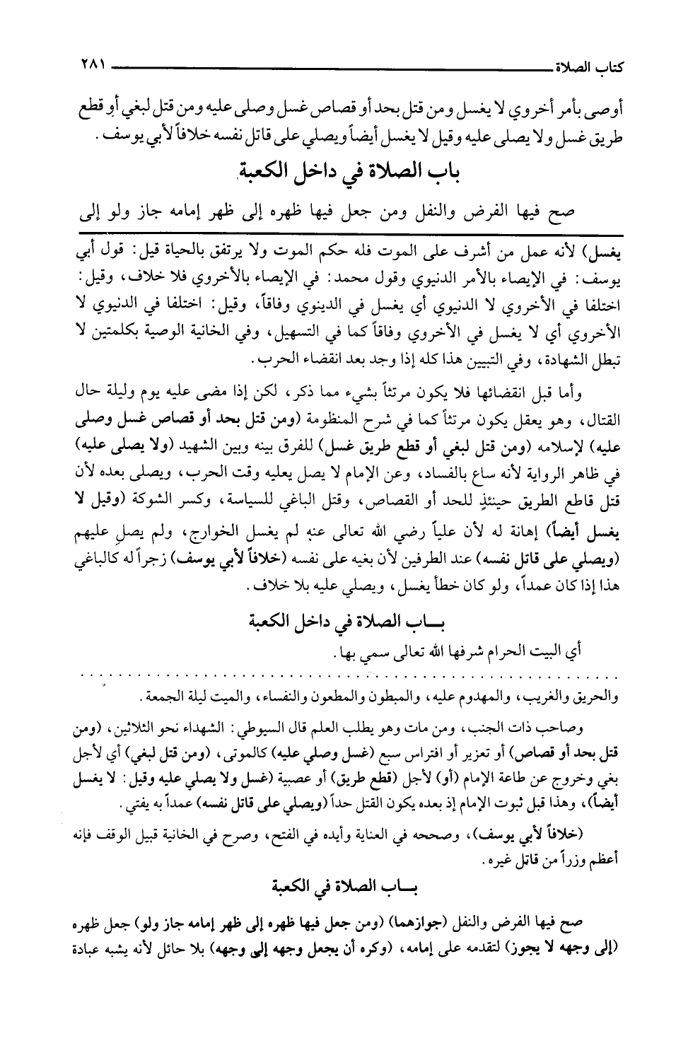 أوصى بِأَمْر أخروي لَا يغسل وَمن قتل بِحَدّ أَو قصاص غسل وَصلى عَلَيْهِ وَمن قتل لبغي أَو قطع طَرِيق غسل وَلَا يصلى عَلَيْهِ وَقيل لَا يغسل أَيْضا وَيُصلي على قَاتل نَفسه خلافًا لأبي يُوسُف.