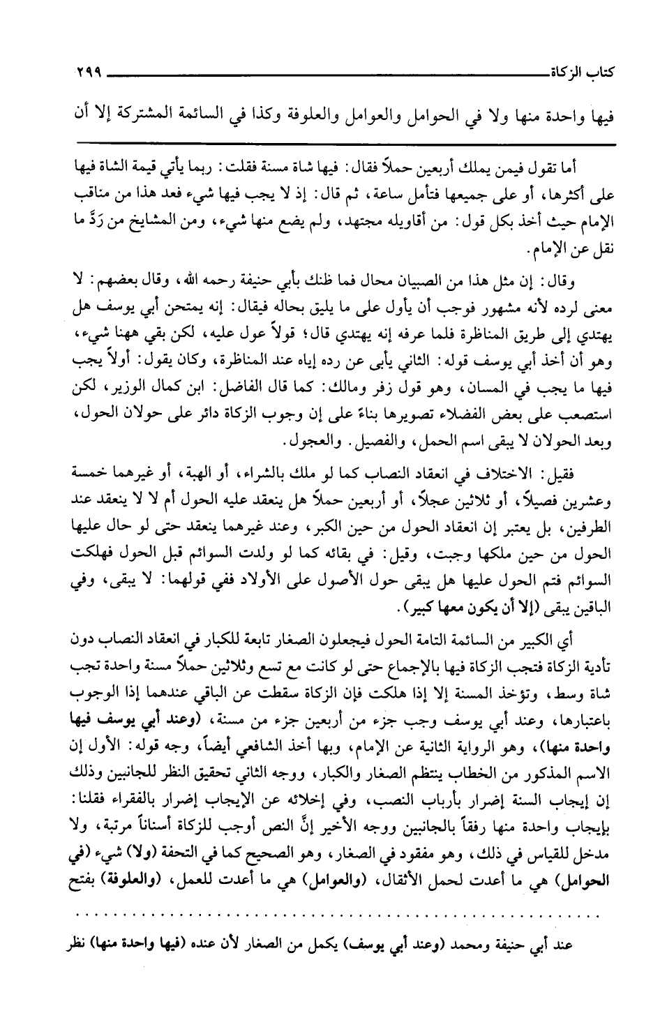 فِيهَا وَاحِدَة مِنْهَا وَلَا فِي الْحَوَامِل والعوامل والعلوفة وَكَذَا فِي السَّائِمَة الْمُشْتَركَة إِلَّا أَن