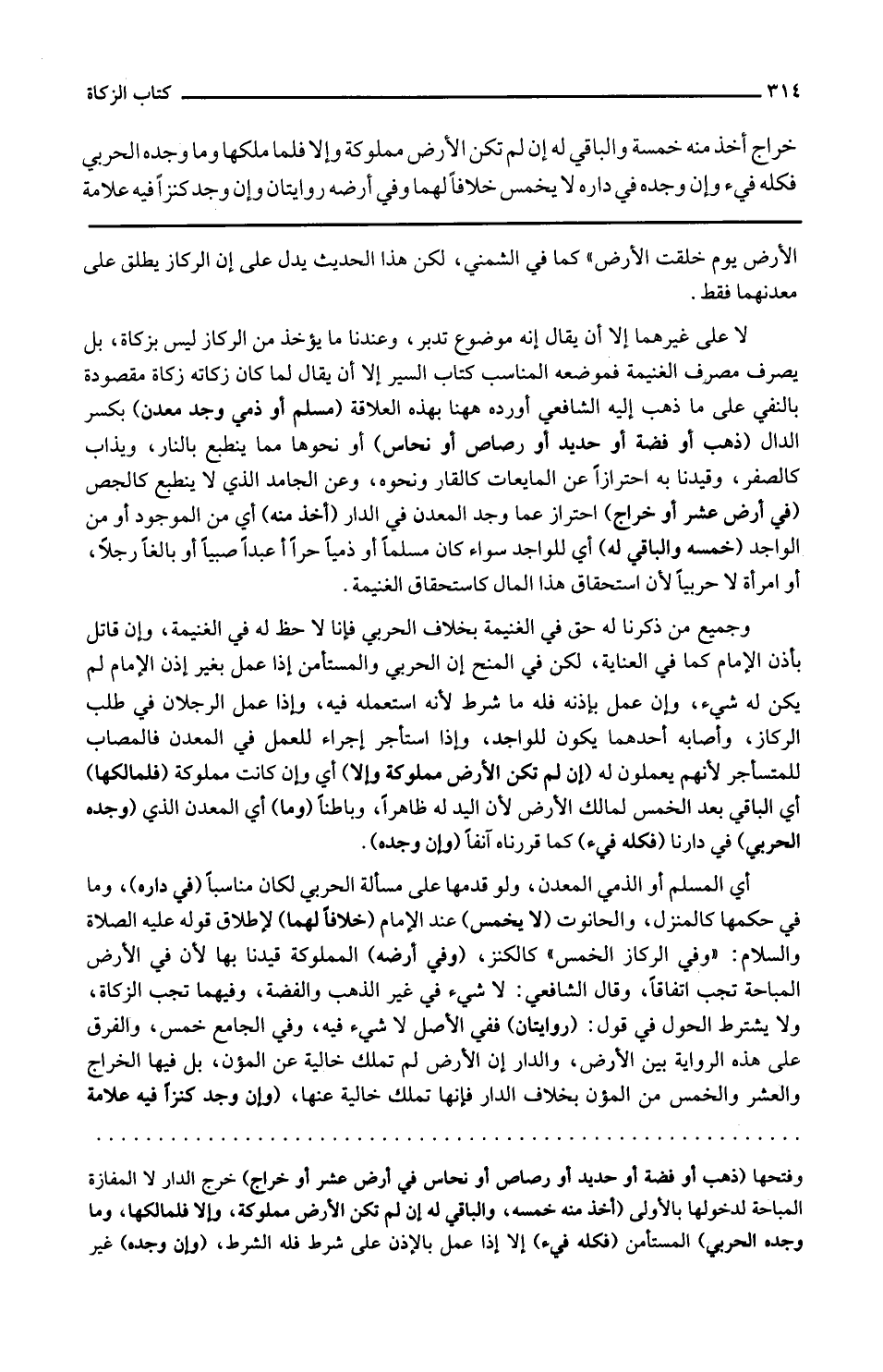 خراج أَخذ مِنْهُ خَمْسَة وَالْبَاقِي لَهُ إِن لم تكن الأَرْض مَمْلُوكَة وَإِلَّا فَلَمَّا ملكهَا وَمَا وجده الْحَرْبِيّ فكله فَيْء وَإِن وجده فِي دَاره لَا يُخَمّس خلافًا لَهما وَفِي أرضه رِوَايَتَانِ وَإِن وجد كنزاً فِيهِ عَلامَة