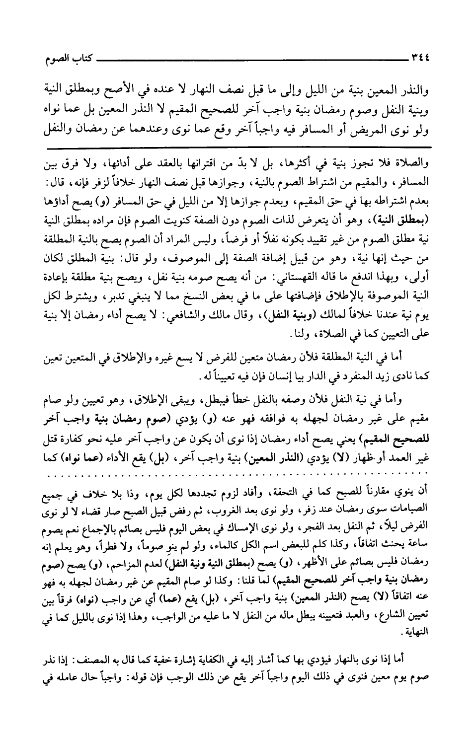 وَالنّذر الْمعِين بَيِّنَة من اللَّيْل وَإِلَى مَا قبل نصف النَّهَار لَا عِنْده فِي الْأَصَح وبمطلق النِّيَّة وبنية النَّفْل وَصَوْم رَمَضَان بنية وَاجِب آخر للصحيح الْمُقِيم لَا النّذر الْمعِين بل عَمَّا نَوَاه وَلَو نوى الْمَرِيض أَو الْمُسَافِر فِيهِ وَاجِبا آخر وَقع عَمَّا نوى وَعِنْدَهُمَا عَن رَمَضَان وَالنَّفْل