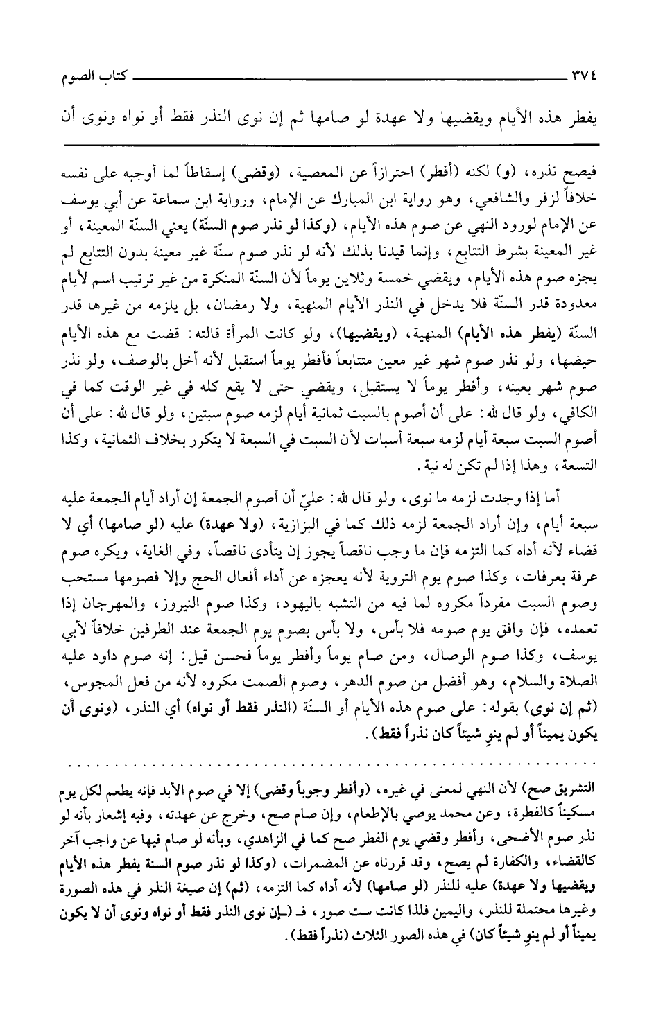 يفْطر هَذِه الْأَيَّام ويقضيها وَلَا عُهْدَة لَو صامها ثمَّ إِن نوى النّذر فَقَط أَو نَوَاه وَنوى أَن