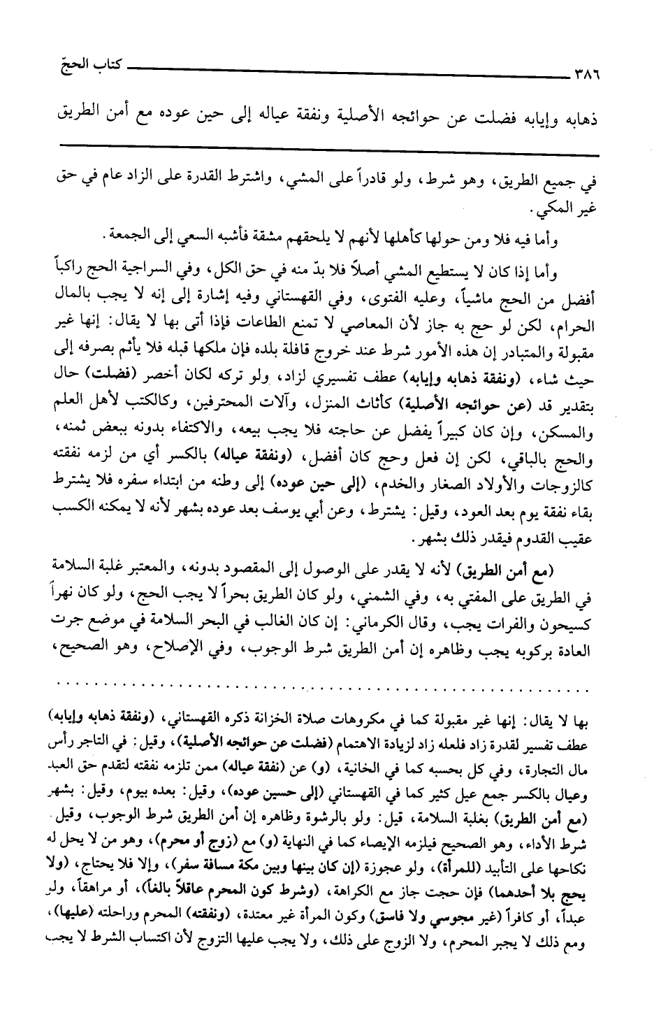 ذَهَابه وأيابه فضلت عَن حَوَائِجه الْأَصْلِيَّة وَنَفَقَة عِيَاله إِلَى حِين عوده مَعَ أَمن الطَّرِيق