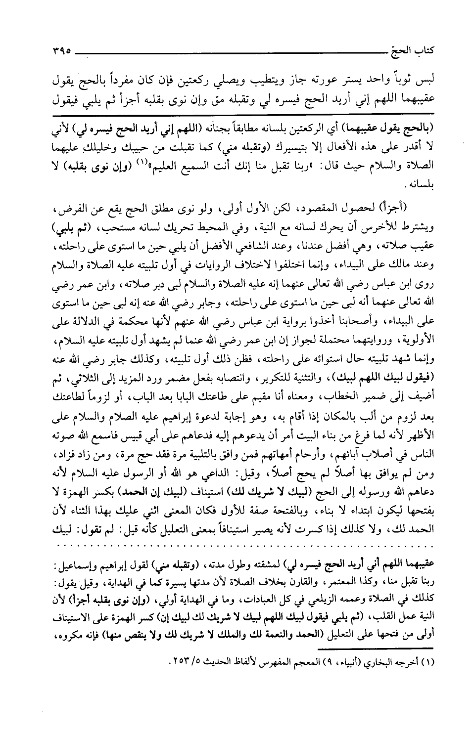 لبس ثوبا وَاحِد يستر عَوْرَته جَازَ ويتطيب وَيُصلي ركعيتن فَإِن كَانَ مُفردا بِالْحَجِّ يَقُول عقبيهما اللَّهُمَّ إِنِّي أُرِيد الْحَج فيسره لي وتقبله مني وَإِن نوى بِقَلْبِه أَجْزَأَ ثمَّ يُلَبِّي فَيَقُول
