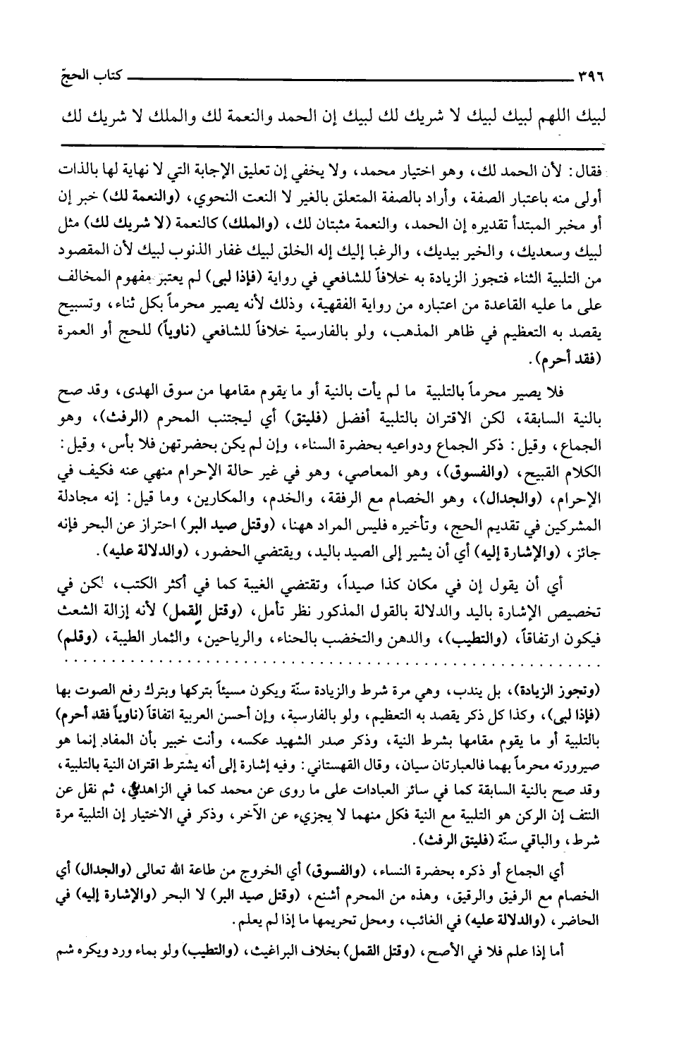 لبيْك اللَّهُمَّ لبيْك لبيْك لَا شريك لَك لبيْك إِن الْحَمد وَالنعْمَة لَك وَالْملك لَا شريك لَك
