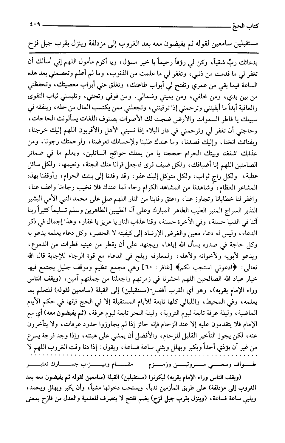 مُسْتَقْبلين سَامِعين لقَوْله ثمَّ يفيضون مَعَه بعد الْغُرُوب إِلَى مُزْدَلِفَة وَينزل بِقرب جبل قزَح