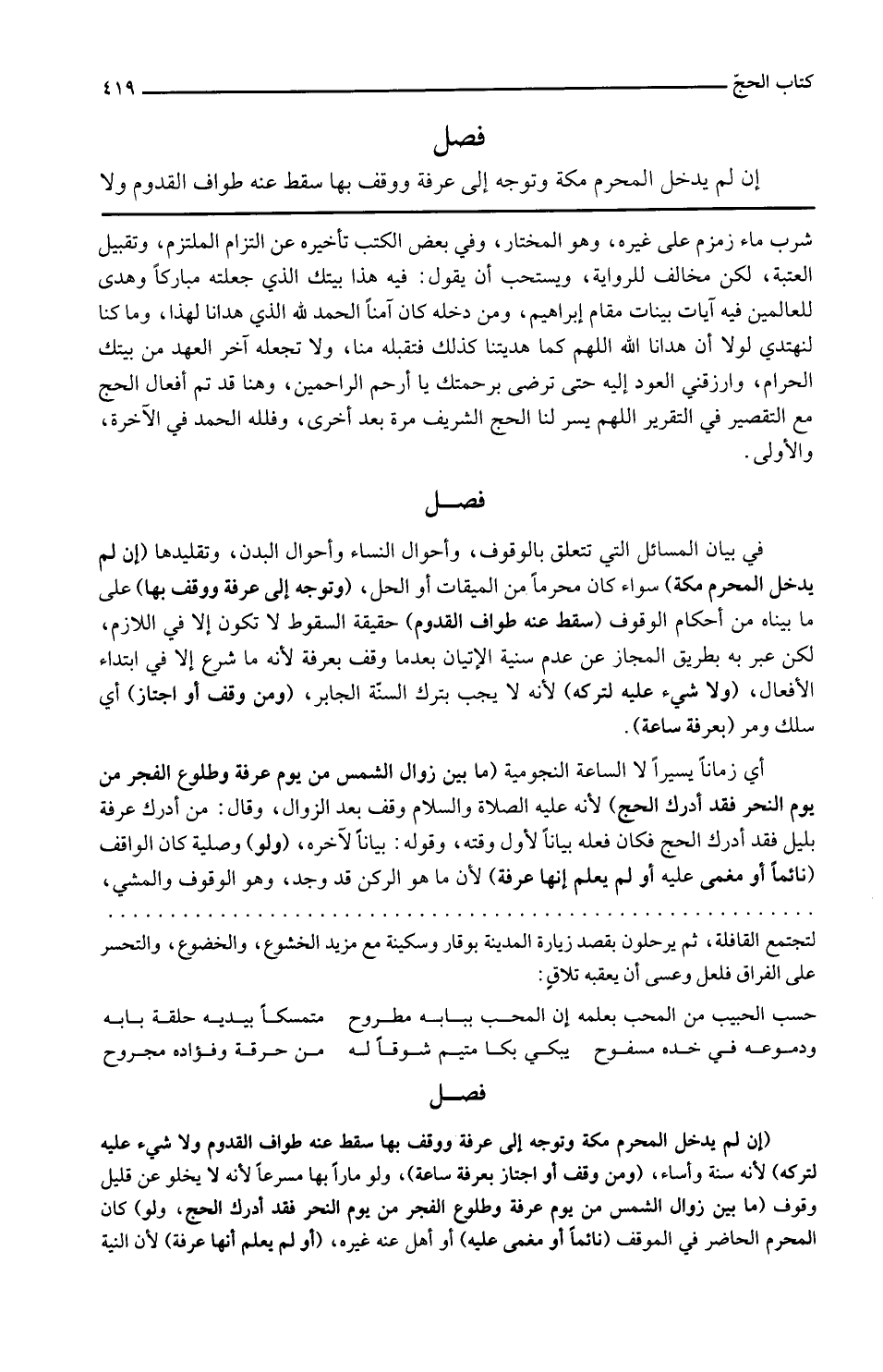إِن لم يدْخل الْمحرم مَكَّة وَتوجه إِلَى عَرَفَة ووقف بهَا سقط عَنهُ طواف الْقدوم وَلَا