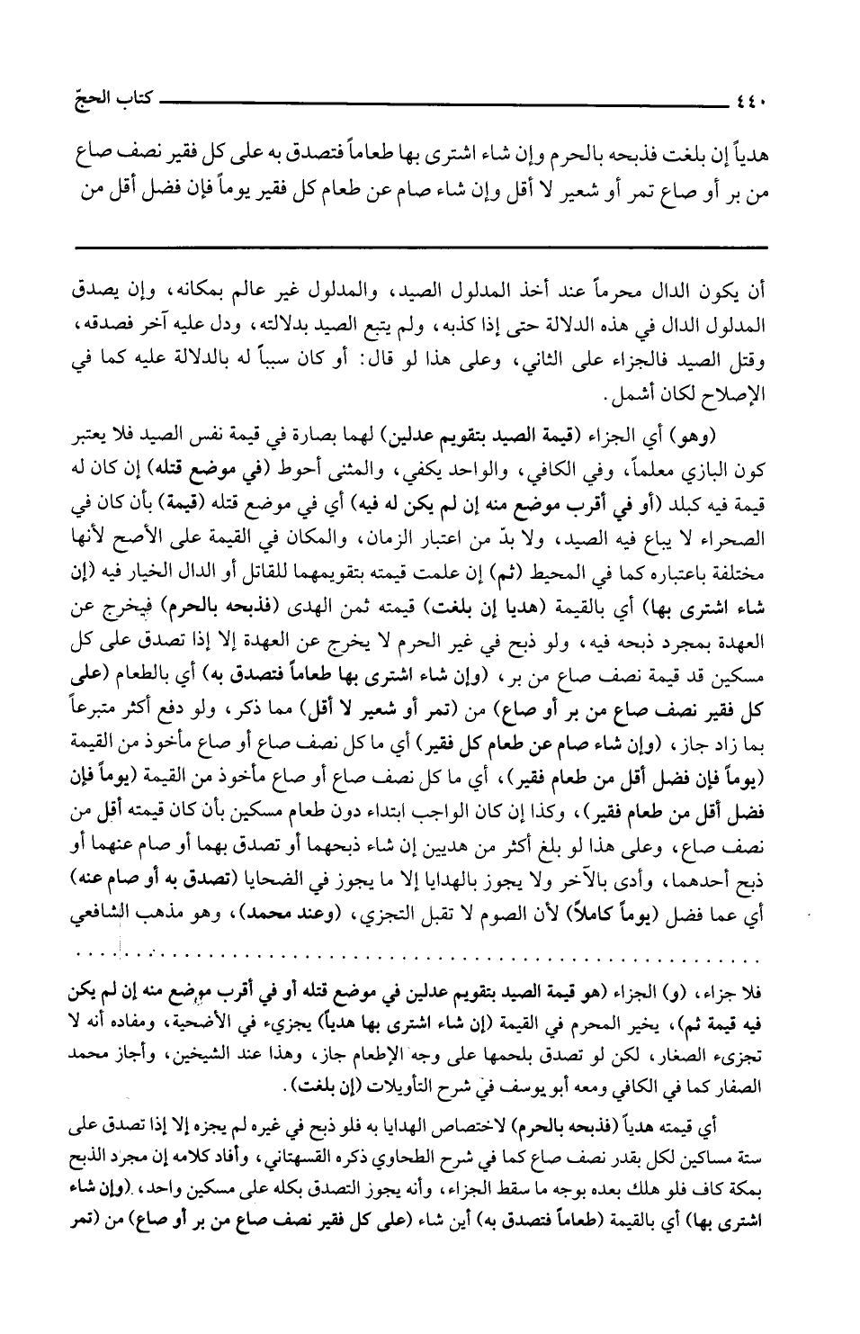هَديا إِن بلغت فذبحه بِالْحرم وَإِن شَاءَ اشْترى بهَا طَعَاما فَتصدق بِهِ على كل فَقير نصف صَاع من بر أَو صَاع تمر أَو شعير لَا أقل وَإِن شَاءَ صَامَ عَن طَعَام كل فَقير يَوْمًا فَإِن فضل أقل من