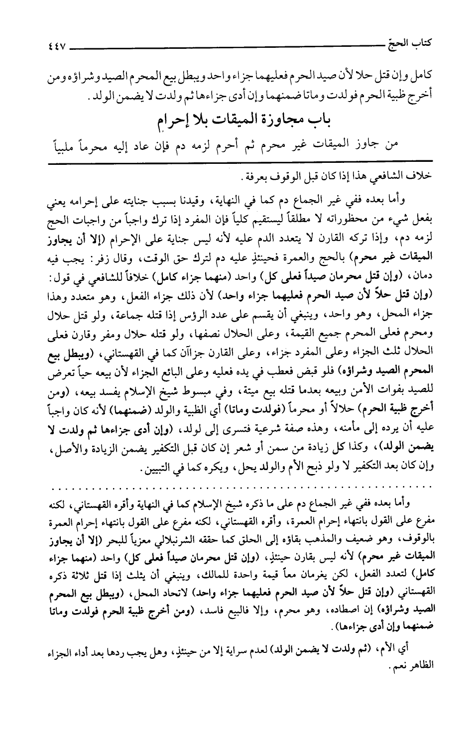 كَامِل وَإِن قتل حلا لِأَن صيد الْحرم فعلَيْهِمَا جَزَاء وَاحِد وَيبْطل بيع الْمحرم الصَّيْد وشراؤه وَمن أخرج ظَبْيَة الْحرم فَولدت وَمَاتَا ضمنهما وَإِن أدّى جزاءها ثمَّ ولدت لَا يضمن الْوَلَد.
