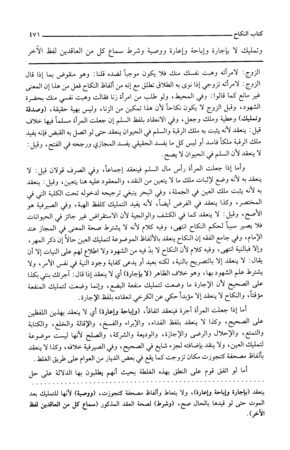 وتمليك لَا بِإِجَارَة وَإِبَاحَة وإعارة وَوَصِيَّة وَشرط سَماع كل من الْعَاقِدين لفظ الآخر