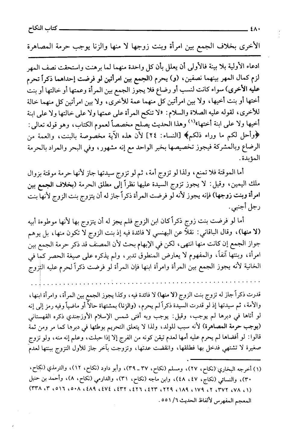 الْأُخْرَى بِخِلَاف الْجمع بَين أمْرَأَة وَبنت زَوجهَا لَا مِنْهَا وَالزِّنَا يُوجب حُرْمَة الْمُصَاهَرَة