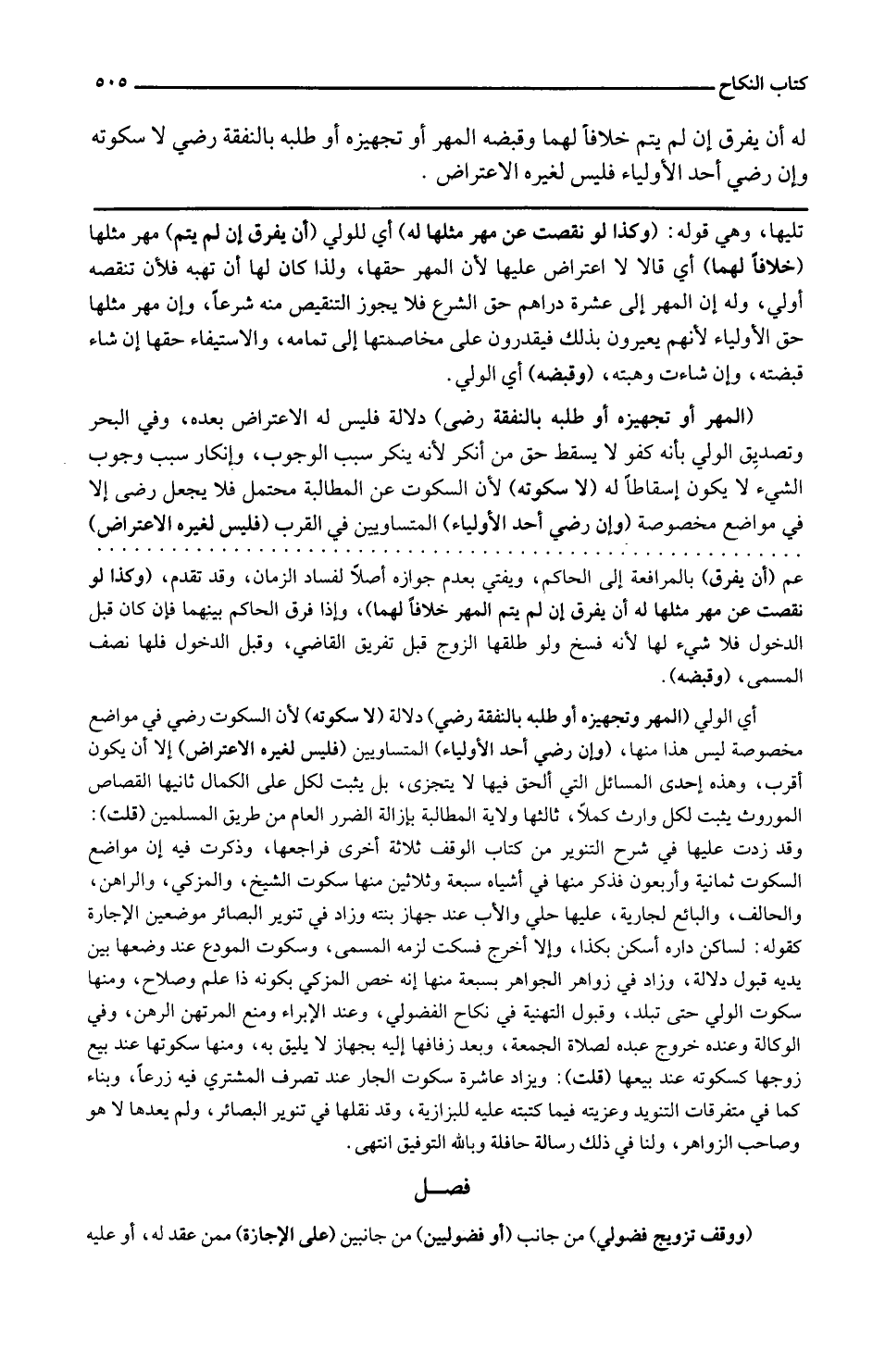 لَهُ أَن يفرق إِن لم يتم خلافًا لَهما وَقَبضه الْمهْر أَو تَجْهِيزه أَو طلبه بِالنَّفَقَةِ رَضِي لَا سُكُوته وَإِن رَضِي أحد الْأَوْلِيَاء فَلَيْسَ لغيره الِاعْتِرَاض.