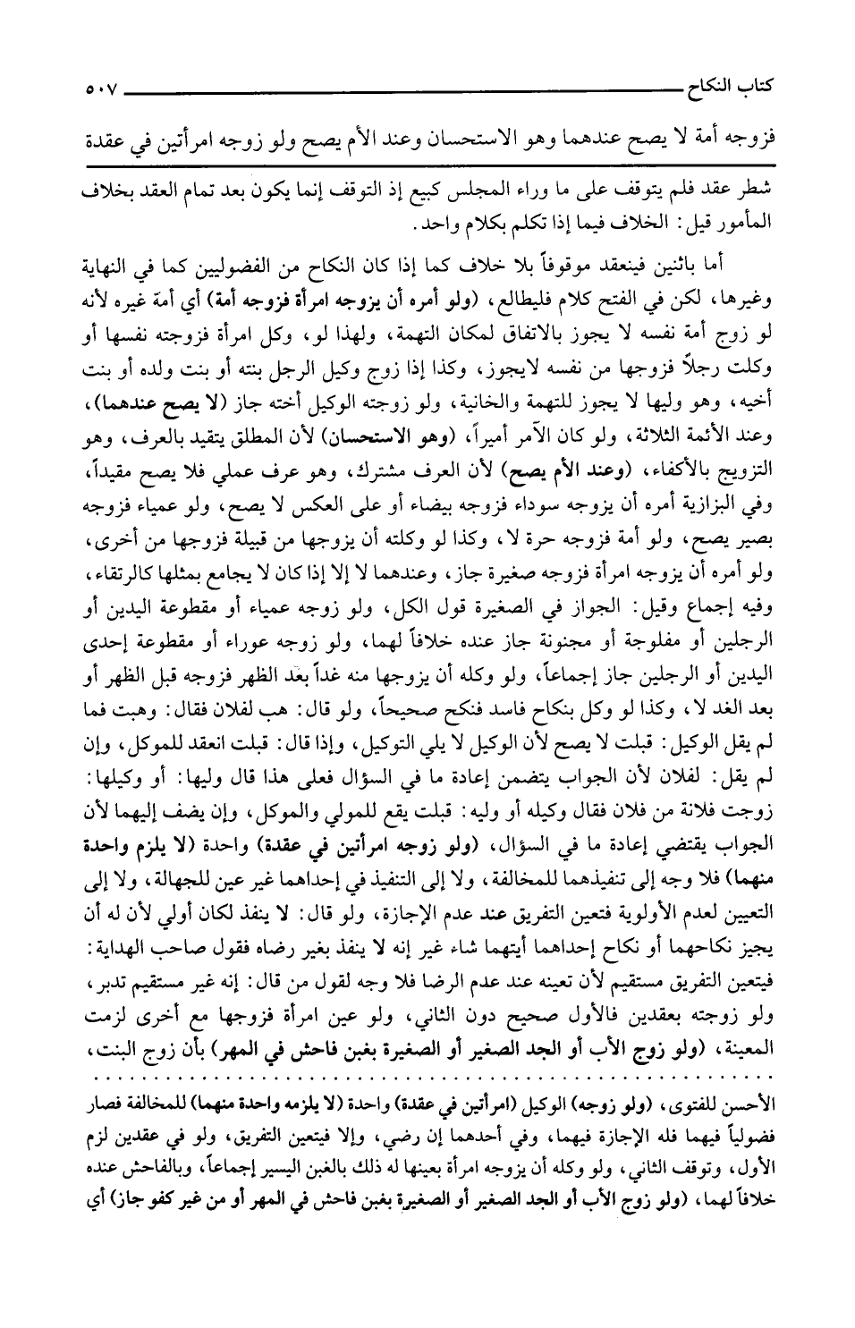 فَزَوجهُ أمة لَا يَصح عِنْدهمَا وَهُوَ الِاسْتِحْسَان وَعند الْأُم يَصح وَلَو زوجه امْرَأتَيْنِ فِي عقدَة