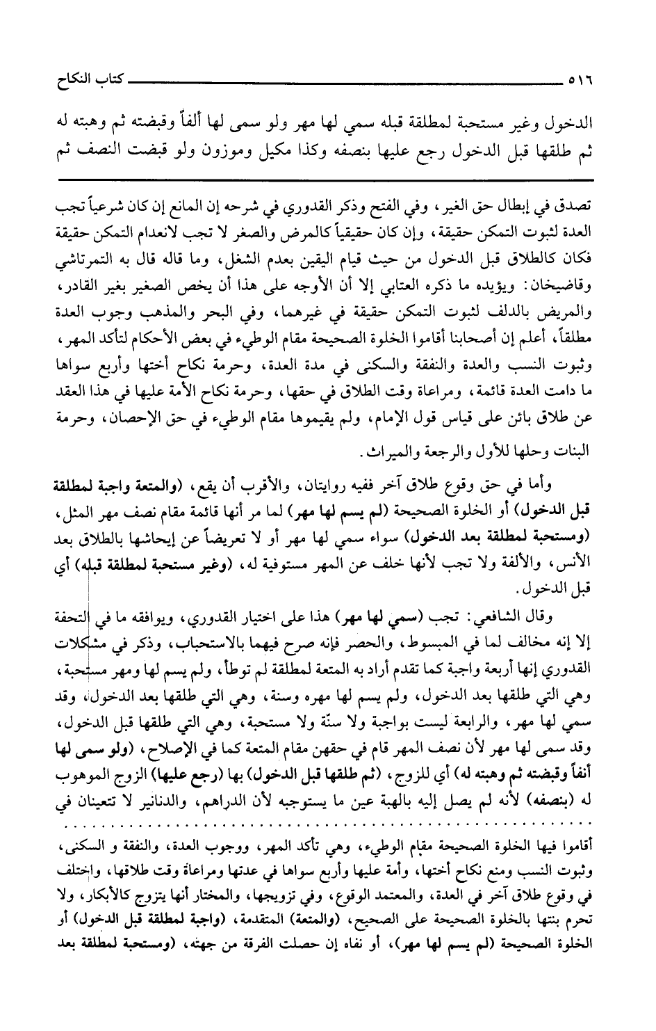 الدُّخُول وَغير مُسْتَحبَّة لمطلقة قبله سمي لَهَا مهر وَلَو سمى لَهَا ألفا وقبضته ثمَّ وهبته لَهُ ثمَّ طَلقهَا قبل الدُّخُول رَجَعَ عَلَيْهَا بِنصفِهِ وَكَذَا مَكِيل وموزون وَلَو قبضت النّصْف ثمَّ