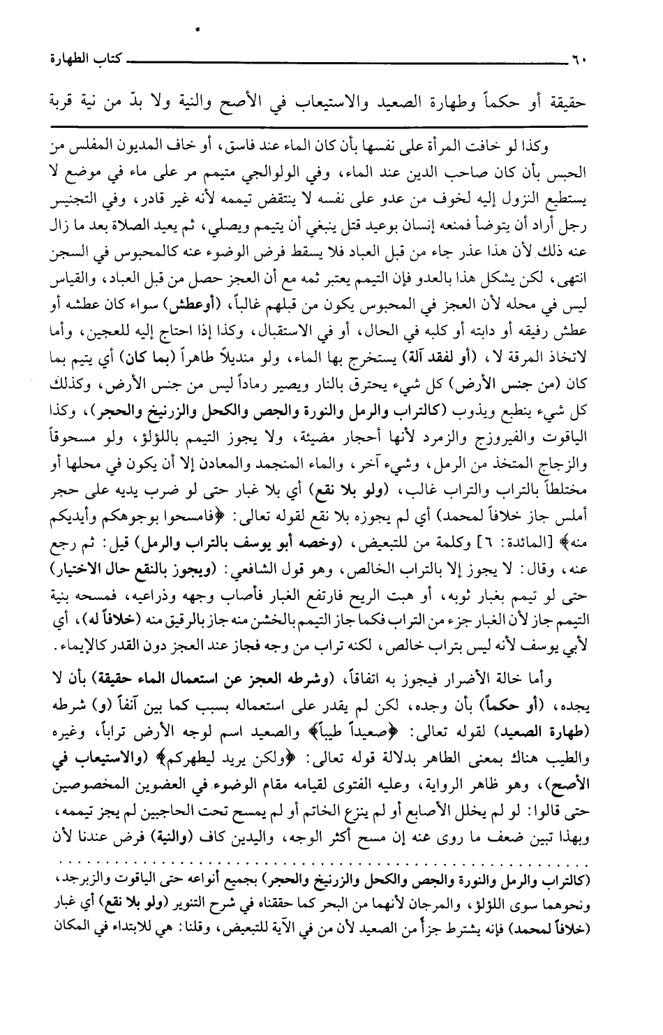 حَقِيقَة أَو حكما وطهارة الصَّعِيد والاستيعاب فِي الْأَصَح وَالنِّيَّة وَلَا بدّ من نِيَّة قربَة