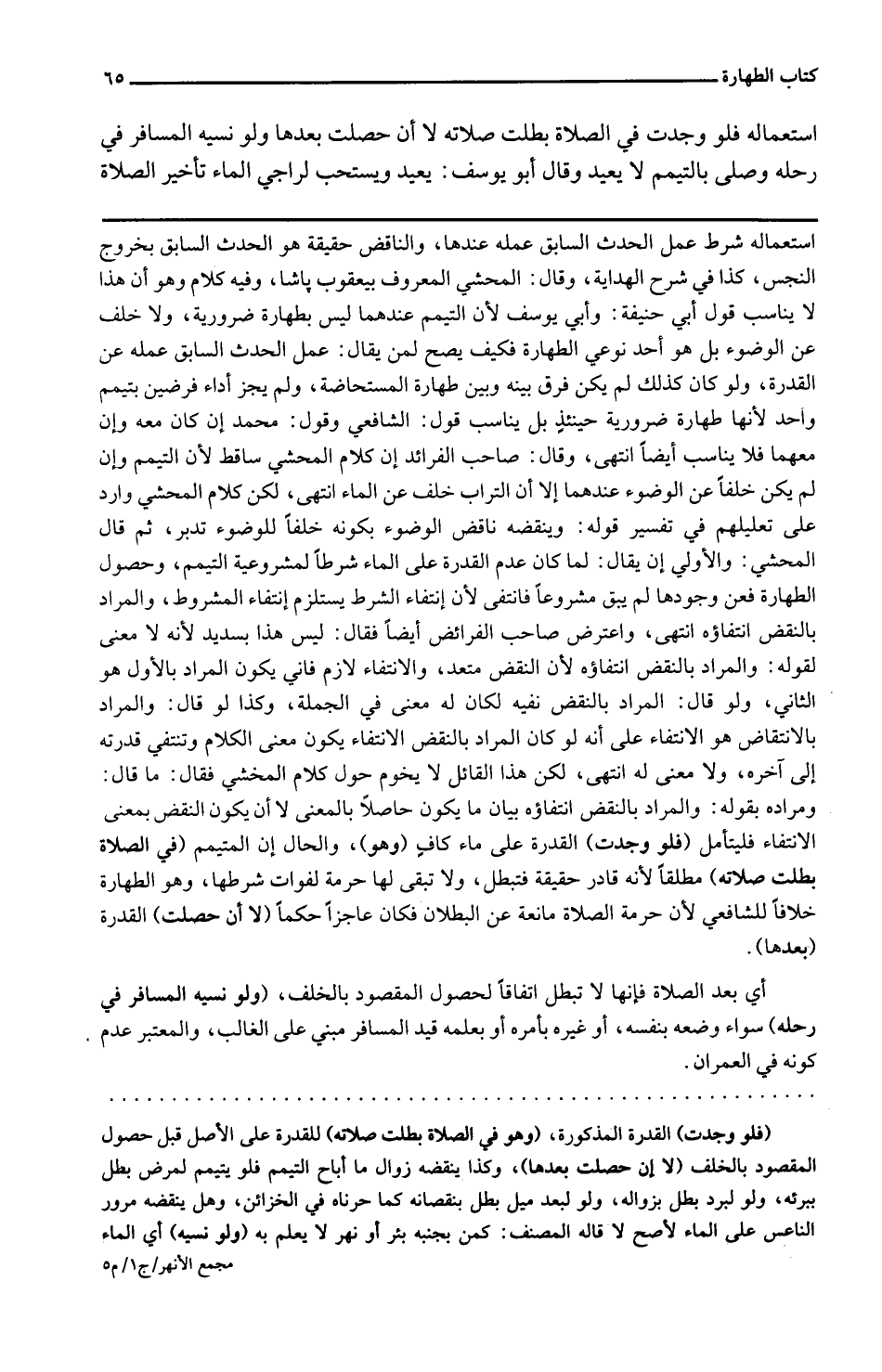 اسْتِعْمَاله فَلَو وجدت فِي الصَّلَاة بطلت صلَاته لَا أَن حصلت بعْدهَا وَلَو نَسيَه الْمُسَافِر فِي رَحْله وَصلى بِالتَّيَمُّمِ لَا يُعِيد وَقَالَ أَبُو يُوسُف: يُعِيد وَيسْتَحب لراجي المَاء تَأْخِير الصَّلَاة