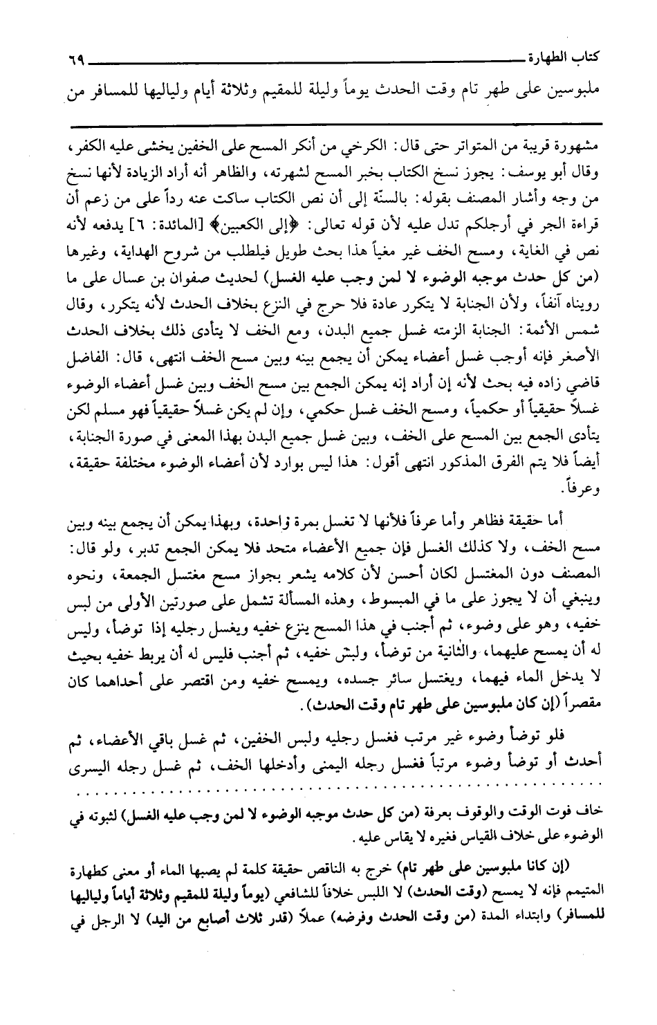 ملبوسين على طهر تَامّ وَقت الْحَدث يَوْمًا وَلَيْلَة للمقيم وَثَلَاثَة أَيَّام ولياليها للْمُسَافِر من