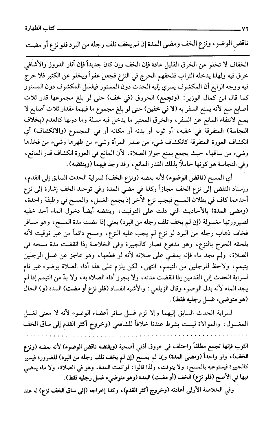 نَاقض الْوضُوء وَنزع الْخُف وَمضى الْمدَّة إِن لم يخف تلف رجله من الْبرد فَلَو نزع أَو مَضَت