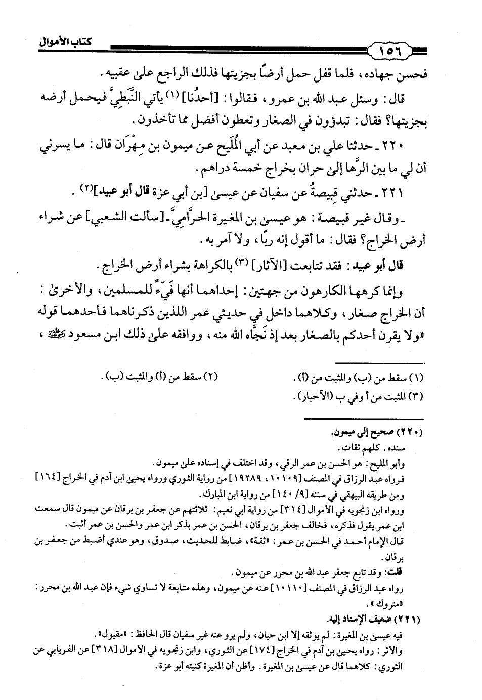 221 - (205) حَدَّثَنِي قَبِيصَةُ، عَنْ سُفْيَانَ، عَنْ عِيسَى بْنِ أَبِي عَزَّةَ قال أبو عبيد: وَقَالَ غَيْرُ قَبِيصَةَ: هُوَ عِيسَى بْنُ الْمُغِيرَةِ الْحَرَامِيُّ - سَأَلْتُ الشَّعْبِيَّ - عَنْ شِرَاءِ أَرْضِ الْخَرَاجِ، فَقَالَ: «مَا أَقُولُ إِنَّهُ رِبًا، وَلَا آمُرُ بِهِ».