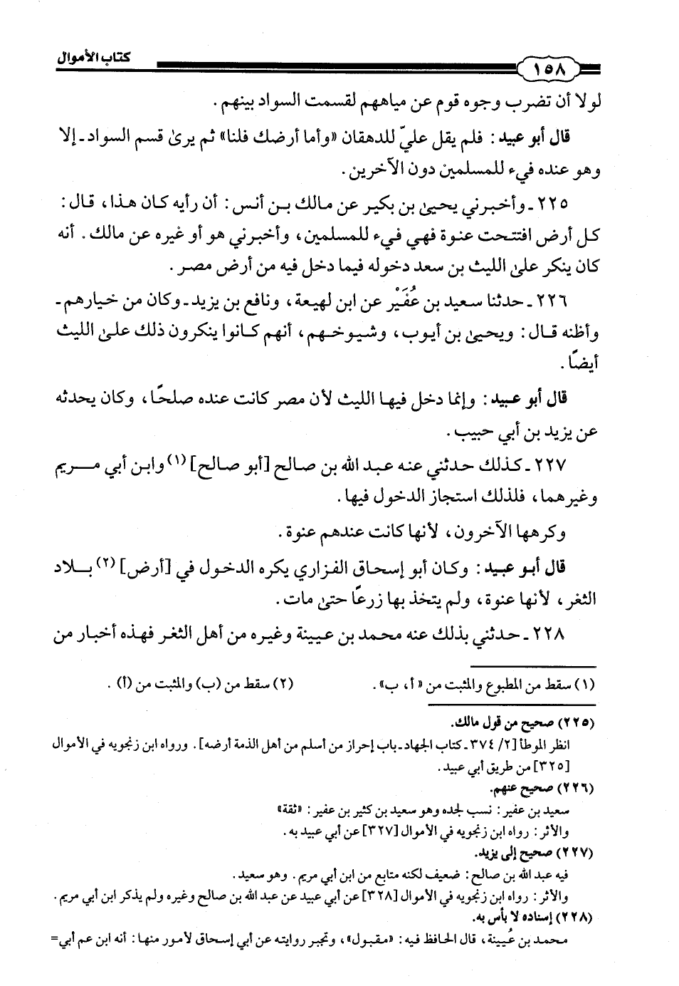 228 - (212) حَدَّثَنِي بِذَلِكُ عَنْهُ مُحَمَّدُ بْنُ عُيَيْنَةَ وَغَيْرُهُ مِنْ أَهْلِ الثَّغْرِ، فَهَذِهِ أَخْبَارُ مَنْ #159# كَرِهَ الدُّخُولَ فِي أَرْضِ الْعَنْوَةِ إِذَا صُيِّرَتْ خَرَاجًا. فَأَمَّا أَرْضُ الصُّلْحِ فَالْأَمْرُ فِيهَا أَيْسَرُ.