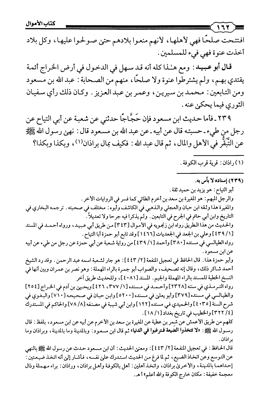 239 - (221) فَأَمَّا حَدِيثُ ابْنِ مَسْعُودٍ، فَإِنَّ حَجَّاجًا حَدَّثَنِي، عَنْ شُعْبَةَ، عَنْ أَبِي التَّيَّاحِ، عَنْ رَجُلٍ، مِنْ طَيِّئٍ - حَسِبْتُهُ قَالَ عَنْ أَبِيهِ - عَنْ عَبْدِ اللَّهِ بْنِ مَسْعُودٍ، قَالَ: نَهَى رَسُولُ اللَّهِ صَلَّى اللهُ عَلَيْهِ وَسَلَّمَ عَنِ التَّبَقُّرِ فِي الْأَهْلِ وَالْمَالِ، ثُمَّ قَالَ عَبْدُ اللَّهِ: فَكَيْفَ بِمَالٍ بِرَاذَانَ، وَبِكَذَا وَبِكَذَا؟.