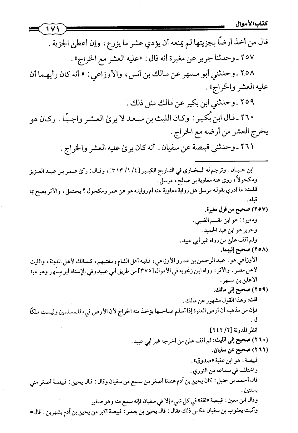 261 - (242) وَحَدَّثَنِي قَبِيصَةُ، عَنْ سُفْيَانَ، أَنَّهُ «كَانَ يَرَى عَلَيْهِ الْعُشْرَ وَالْخَرَاجَ».