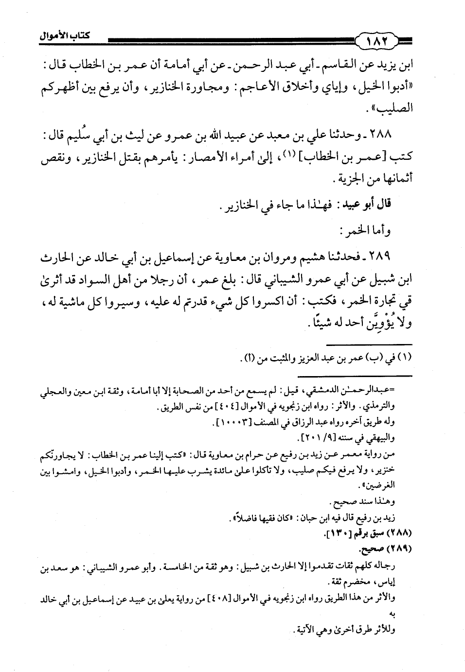 288 - (265) وَحَدَّثَنَا عَلِيُّ بْنُ مَعْبَدٍ، عَنْ عُبَيْدِ اللَّهِ بْنِ عَمْرٍو، عَنْ لَيْثِ بْنِ أَبِي سُلَيْمٍ، قَالَ: كَتَبَ عُمَرُ بْنُ الْخَطَّابِ إِلَى أُمَرَاءِ الْأَمْصَارِ «يَامُرَهُمْ بِقَتْلِ الْخَنَازِيرِ، وَنَقْصِ أَثْمَانِهَا مِنَ الْجِزْيَةِ».