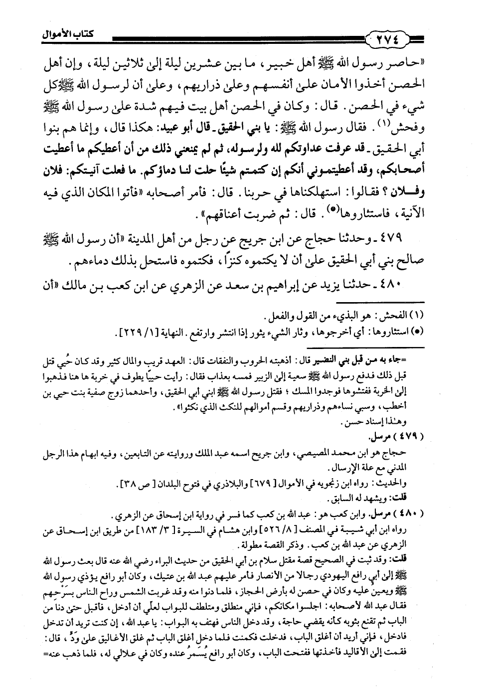 479 - (459) وَحَدَّثَنَا حَجَّاجُ عَنْ ابْنِ جُرَيْجٍ، عَنْ رَجُلٍ مِنْ أَهْلِ الْمَدِينَةِ، أَنَّ رَسُولَ اللَّهِ صَلَّى اللهُ عَلَيْهِ وَسَلَّمَ صَالَحَ بَنِي أَبِي الْحُقَيْقِ عَلَى أَنْ لَا يَكْتُمُوهُ كَنْزًا فَكَتَمُوهُ فَاسْتَحَلَّ بِذَلِكَ دِمَاءَهُمْ.