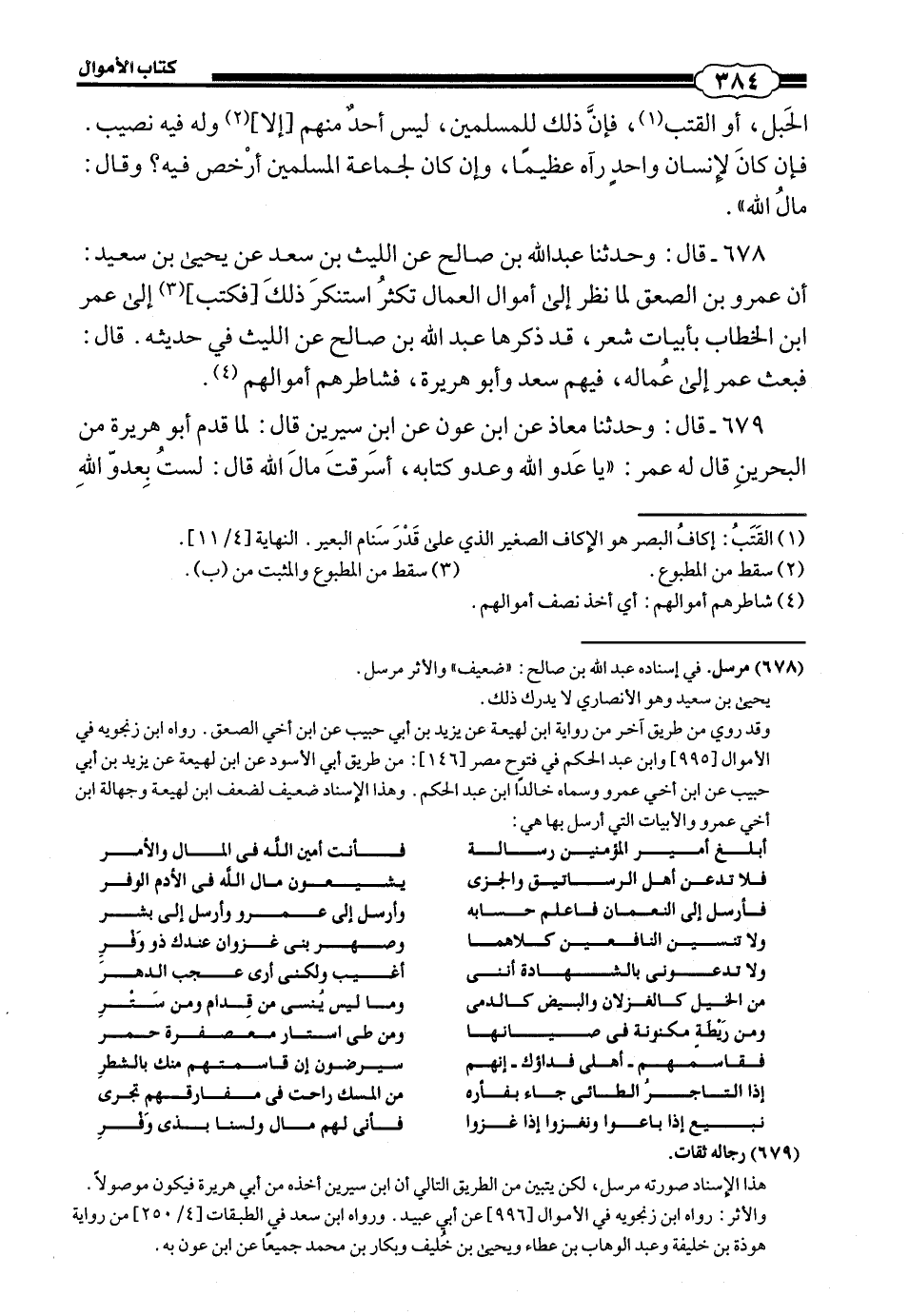 678 - (666) قَالَ: وَحَدَّثَنَا عَبْدُ اللَّهِ بْنُ صَالِحٍ، عَنِ اللَّيْثِ بْنِ سَعْدٍ، عَنْ يَحْيَى بْنِ سَعِيدٍ، أَنَّ عَمْرَو بْنَ الصَّعْقِ لَمَّا نَظَرَ إِلَى أَمْوَالِ الْعُمَّالِ تُكْثُرُ اسْتَنْكَرَ ذَلِكَ فكتب إِلَى عُمَرَ بْنِ الْخَطَّابِ بِأَبْيَاتِ شِعْرٍ - قَدْ ذَكَرَهَا عَبْدُ اللَّهِ بْنُ صَالِحٍ، عَنِ اللَّيْثِ فِي حَدِيثِهِ - قَالَ: فَبَعَثَ عُمَرُ إِلَى عُمَّالِهِ، فِيهِمْ سَعْدٌ وَأَبُو هُرَيْرَةَ، فَشَاطَرَهُمْ أَمْوَالَهُمْ.