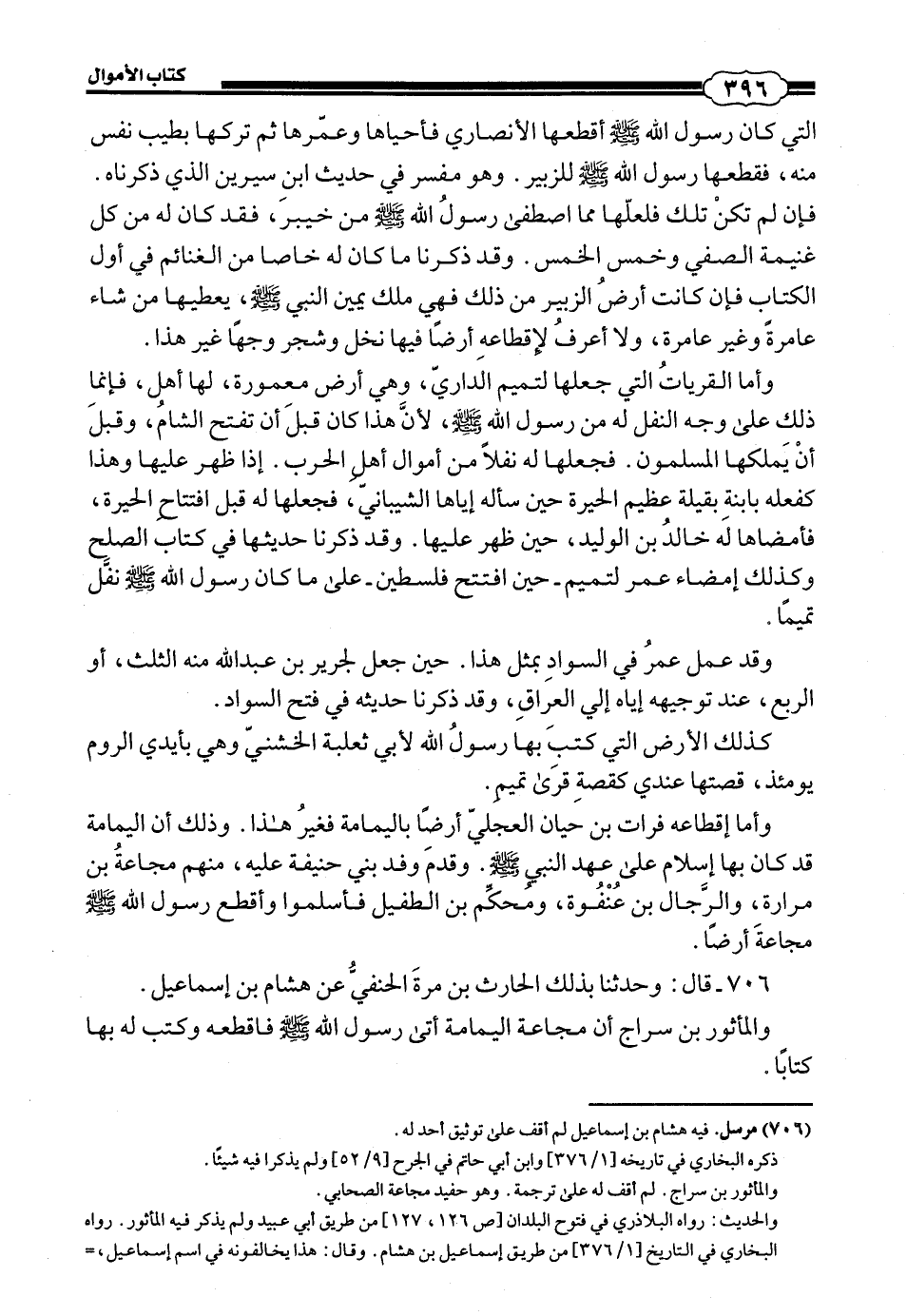 706 - (694) قَالَ: حَدَّثَنَا بِذَلِكُ الْحَارِثُ بْنُ مُرَّةَ الْحَنَفِيُّ، عَنْ هِشَامِ بْنِ إِسْمَاعِيلَ وَالْمَاثُورُ بن سِرَاجٍ أَنَّ مُجَّاعَةَ الْيَمَامَةِ أَتَى رَسُولَ اللَّهِ صَلَّى اللهُ عَلَيْهِ وَسَلَّمَ فَأَقْطَعَهُ، وَكَتَبَ لَهُ بِهَا كِتَابًا: