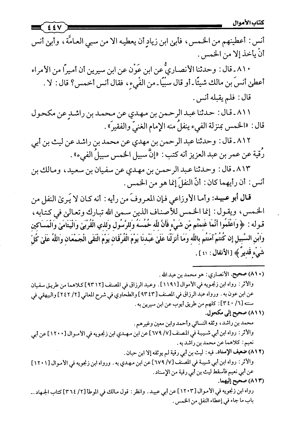 812 - (818) قَالَ: وَحَدَّثَنَا عَبْدُ الرَّحْمَنِ بْنُ مَهْدِيِّ، عَنْ مُحَمَّدِ بْنِ رَاشِدٍ، عَنْ لَيْثِ بْنِ أَبِي رُقْيَةَ، عَنْ عُمَرَ بْنِ عَبْدِ الْعَزِيزِ، أَنَّهُ كَتَبَ: إِنَّ سَبِيلَ الْخُمُسِ سَبِيلُ الْفَيْءِ.