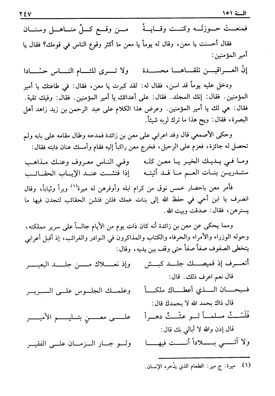 فقال أحسنت يا معن، وقال له يوماً يا معن ما أكثر وقوع الناس في قومك؟ فقال أمير المؤمنين: