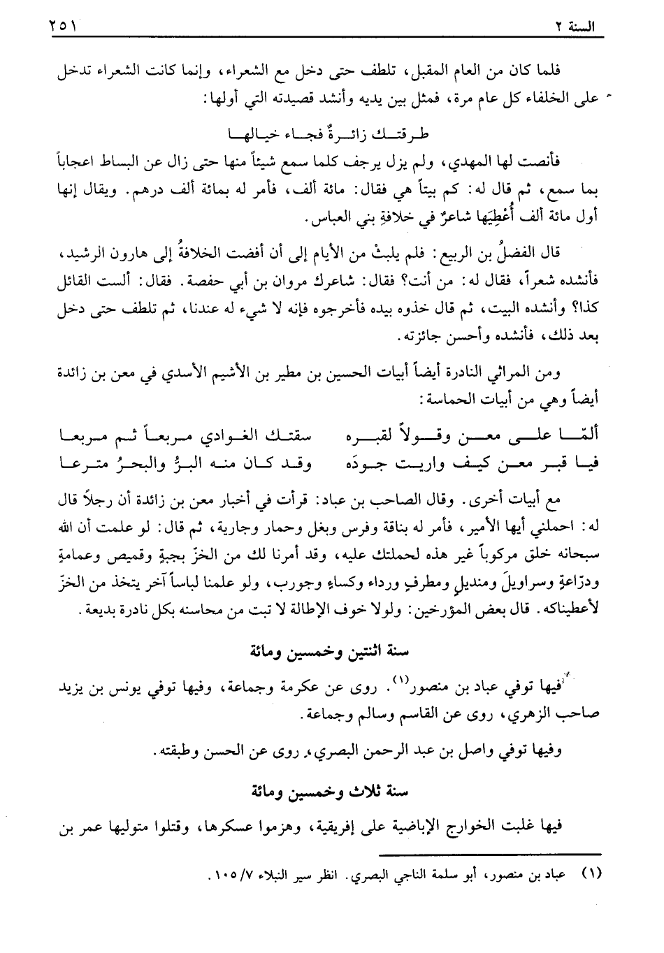مع أبيات أخرى. وقال الصاحب بن عباد: قرأت في أخبار معن بن زائدة أن رجلاً قال له: احملني أيها الأمير، فأمر له بناقة وفرس وبغل وحمار وجارية، ثم قال: لوعلمت أن الله سبحانه خلق مركوباً غير هذه لحملتك عليه، وقد أمرنا لك من الخز بجبة وقميص وعمامة ودراعة وسراويل ومنديل ومطرف ورداء وكساء وجورب، ولو علمنا لباساً آخر يتخذ من الخز لأعطيناكه. قال بعض المؤرخين: ولولا خوف الإطالة لا تبت من محاسنه بكل نادرة بديعة.