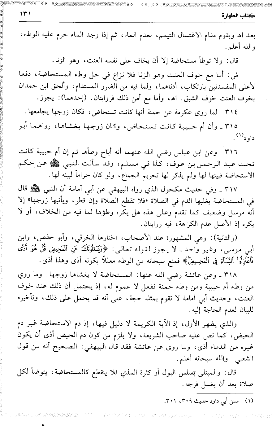 315 وأن أم حبيبة كانت تستحاض ، وكان زوجها يغشاها ، رواهما أبو داود .