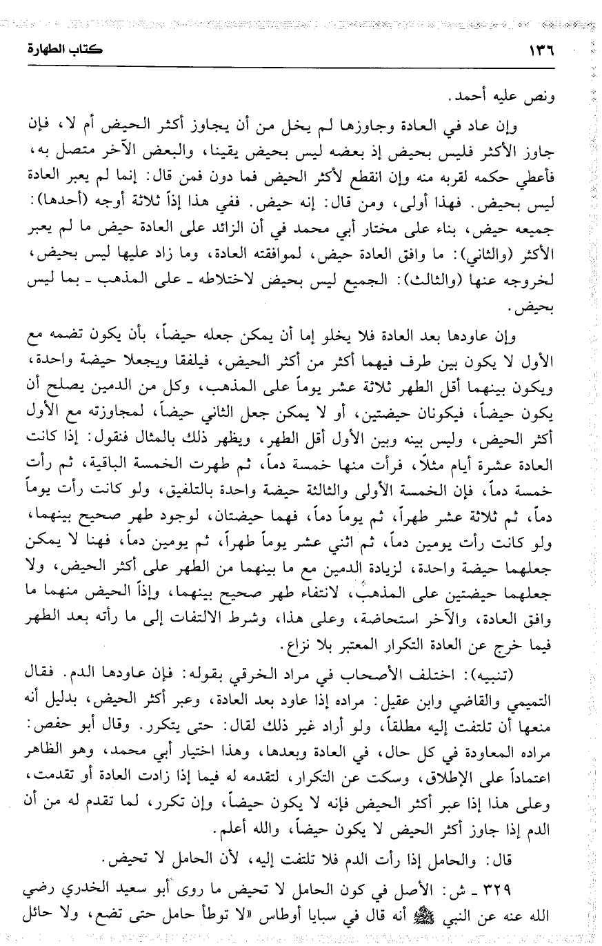 329 ش : الأصل في كون الحامل لا تحيض ما روى أبو سعيد الخدري رضي الله عنه عن النبي أنه قال في سبايا أوطاس ( لا توطأ حامل حتى تضع ، ولا حائل